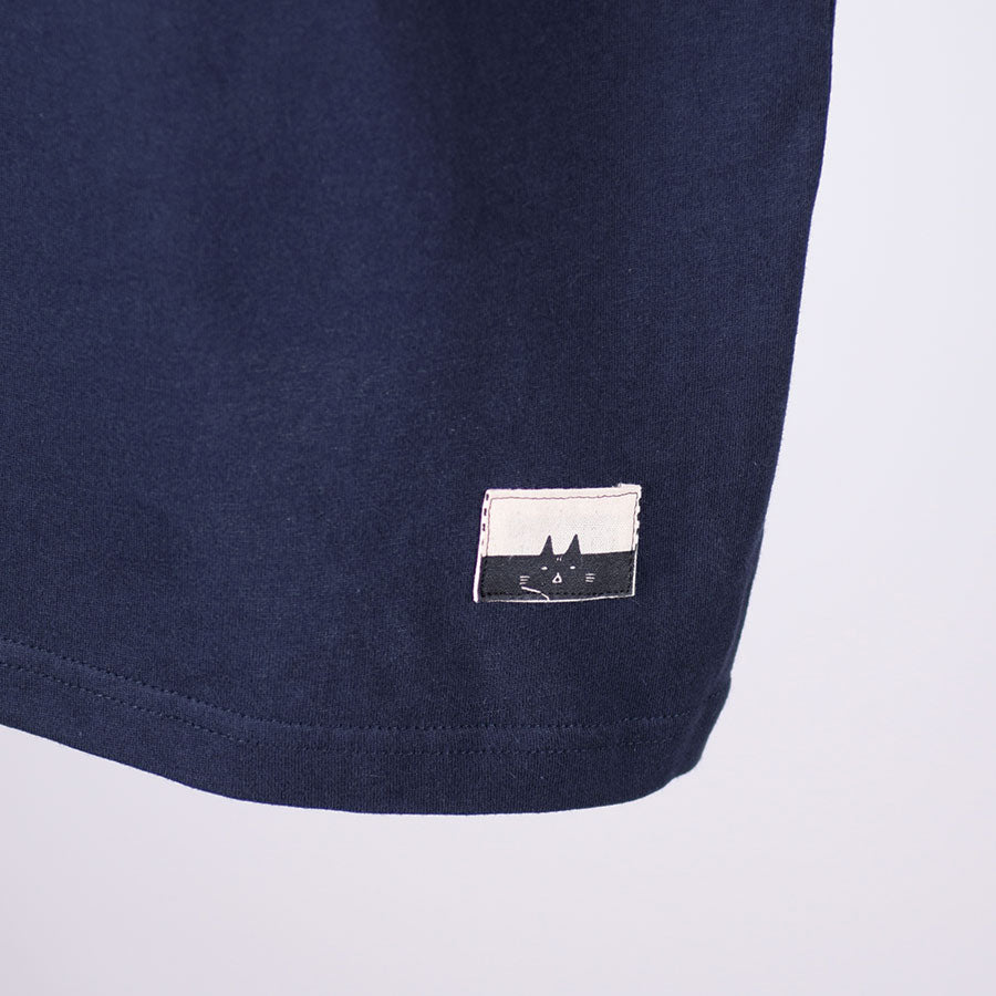 身頃には飾りネームを縫い付けてさりげないアクセントに。