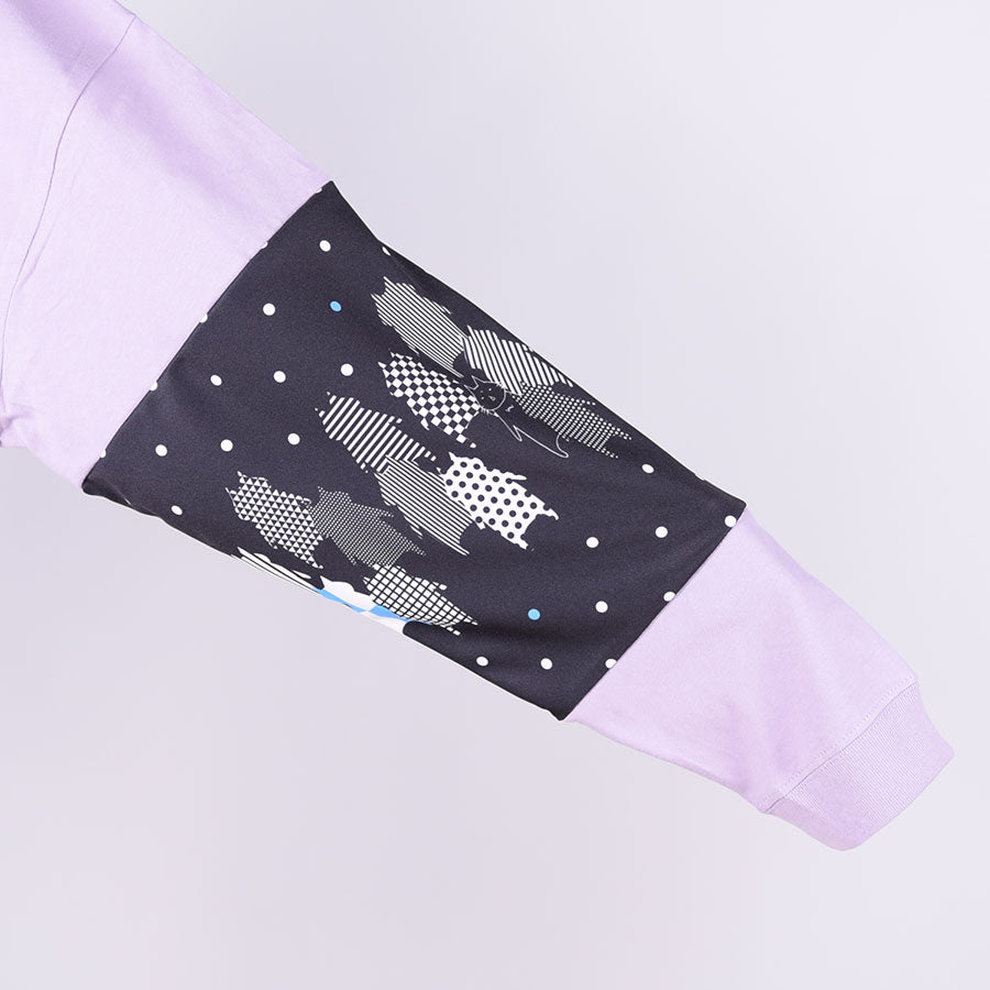 袖を色んなプリント生地でパッチワークしたカットソー。