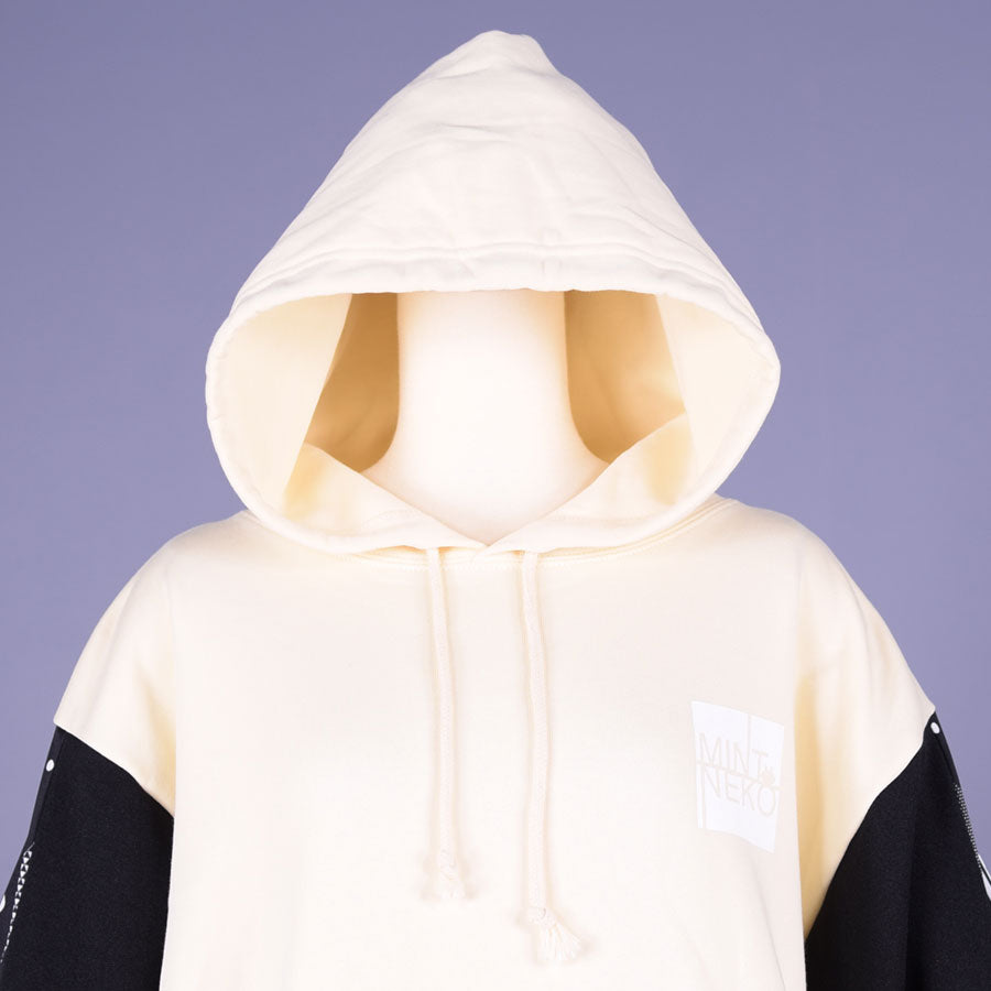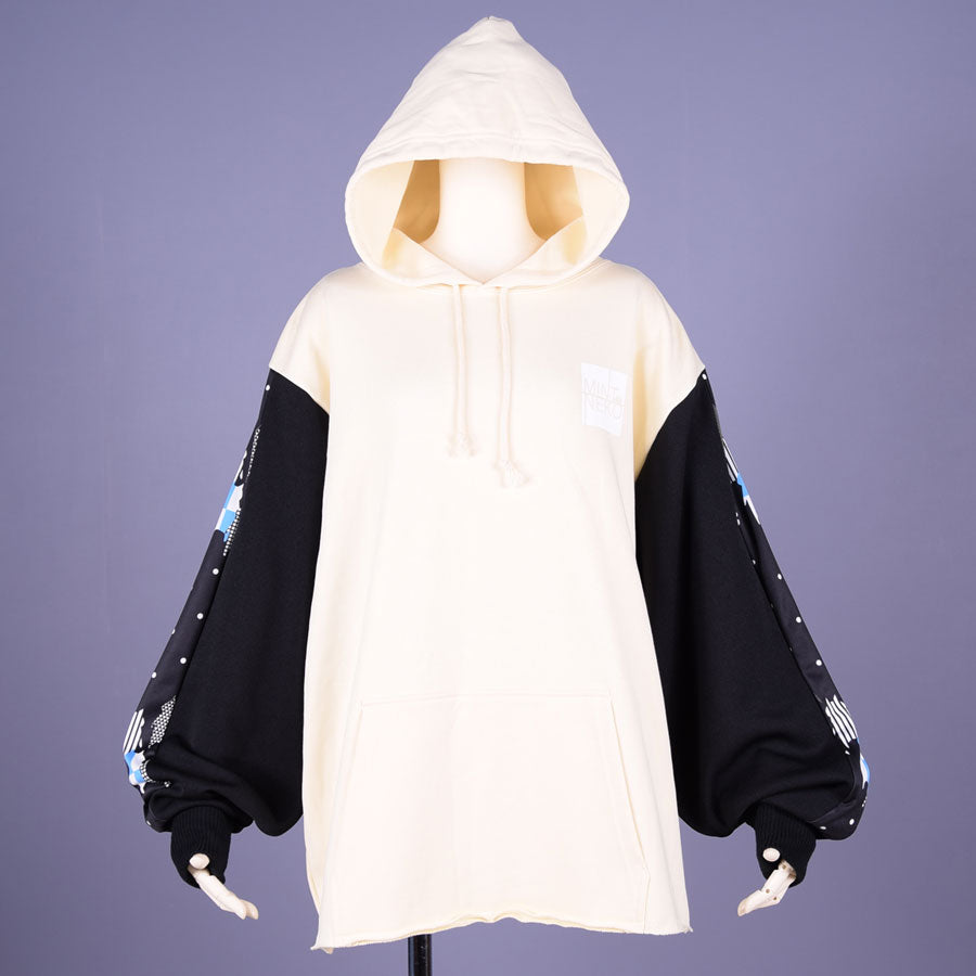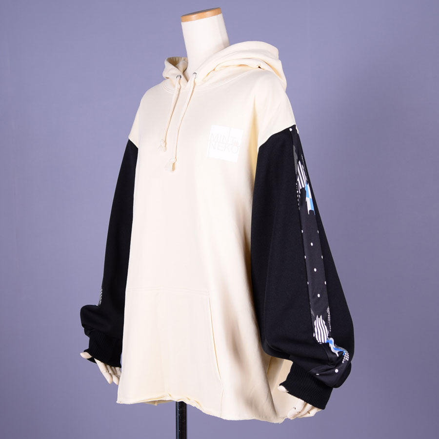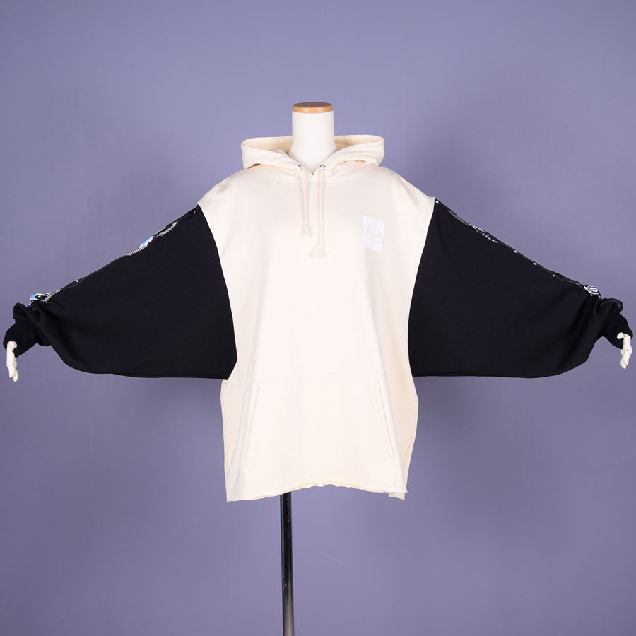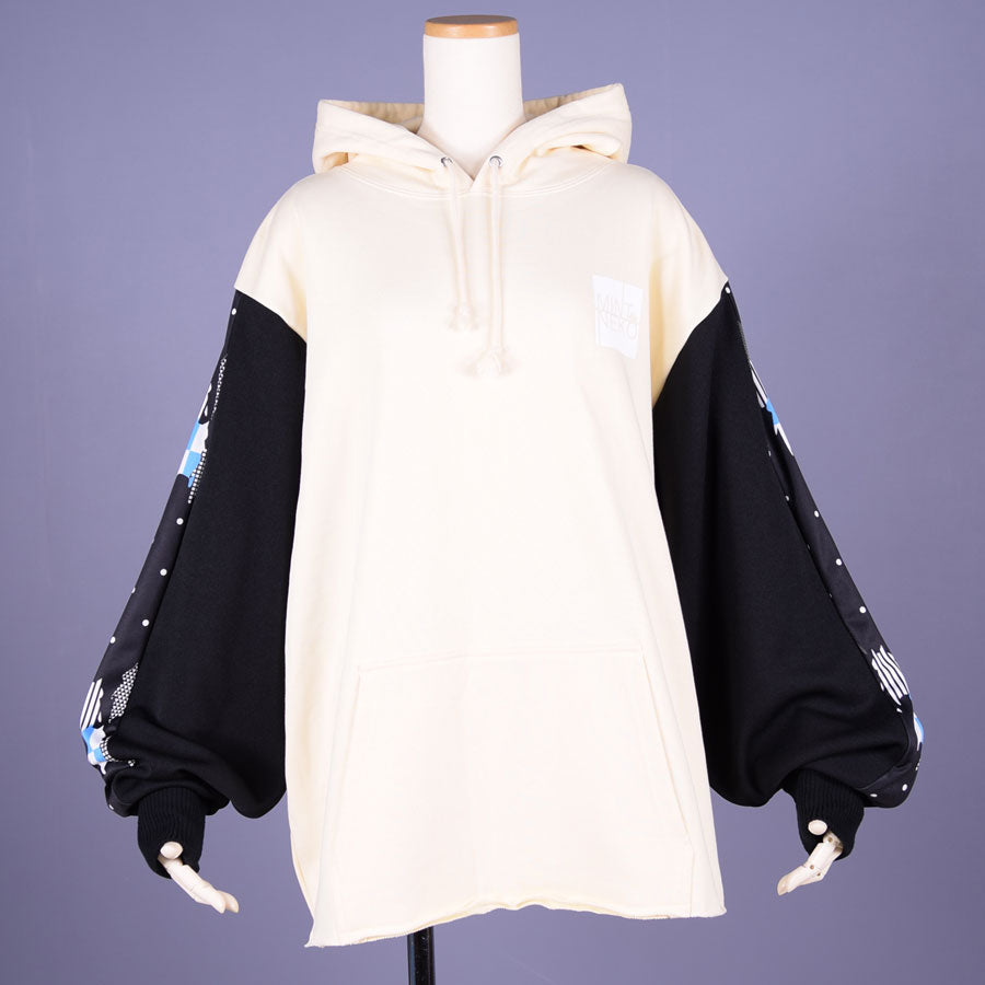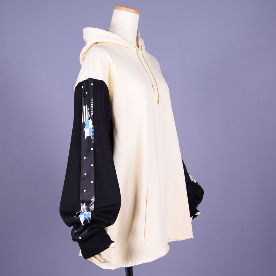 袖はジャージ、身頃はスウェットを使用して仕立てたフーディー。