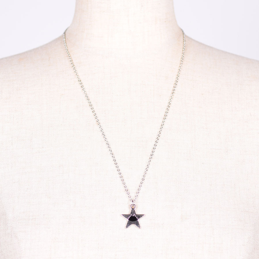 星の中にネコのシルエットをデザインした小さなチャームを使用したネックレス。