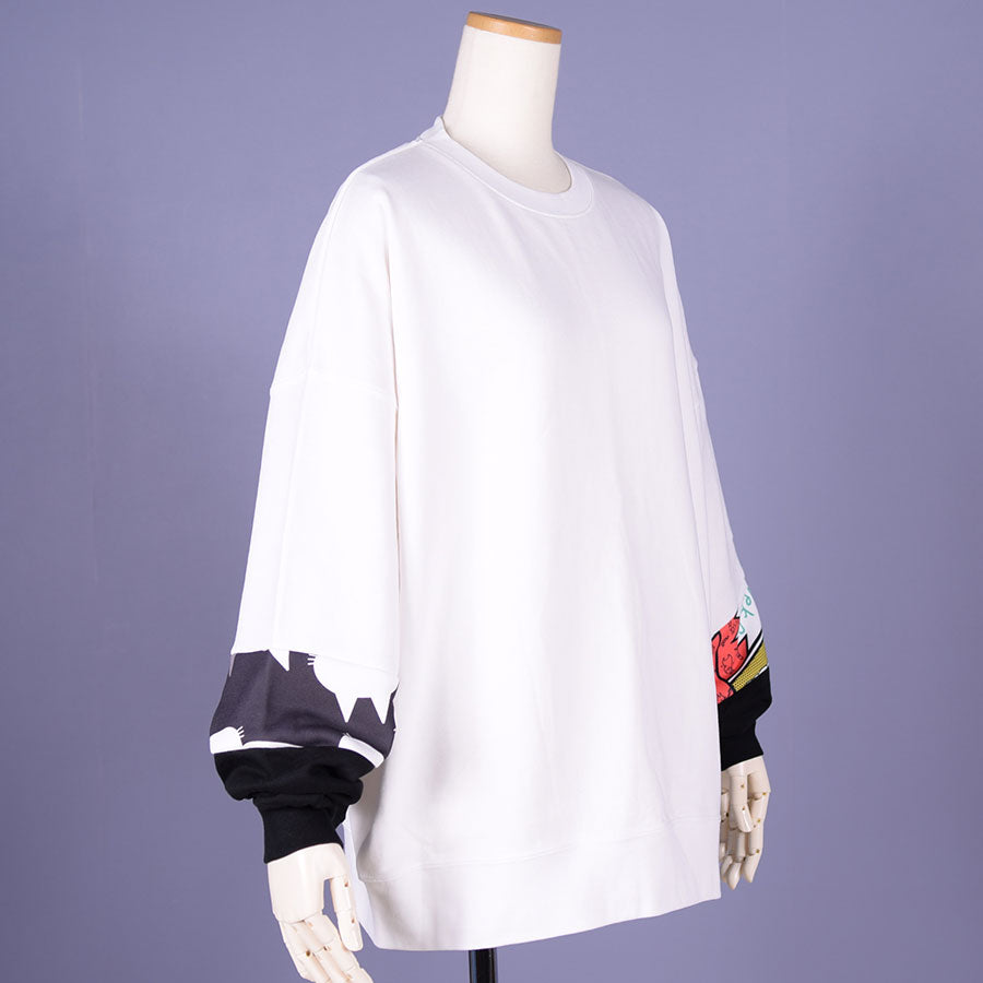 袖をオリジナルテキスタイルで切り替えたスウェット。