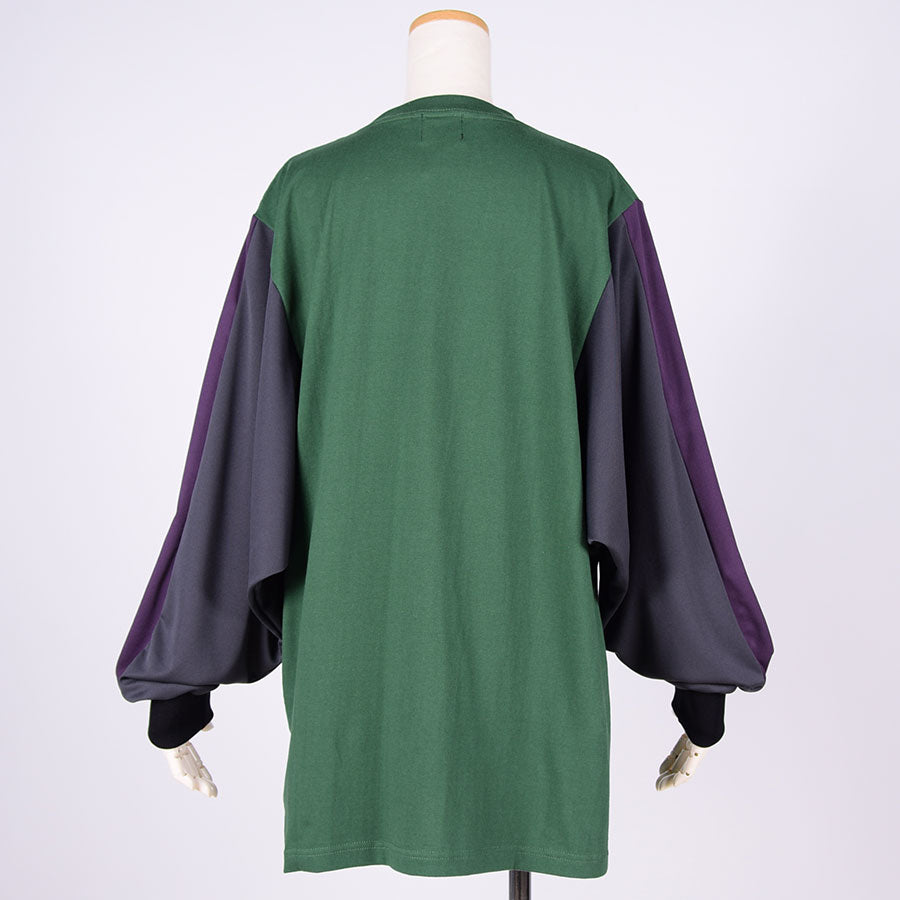 ゆったり目の身幅、アームホールにしてあるので一枚で着用してもインパクトのあるデザインです。