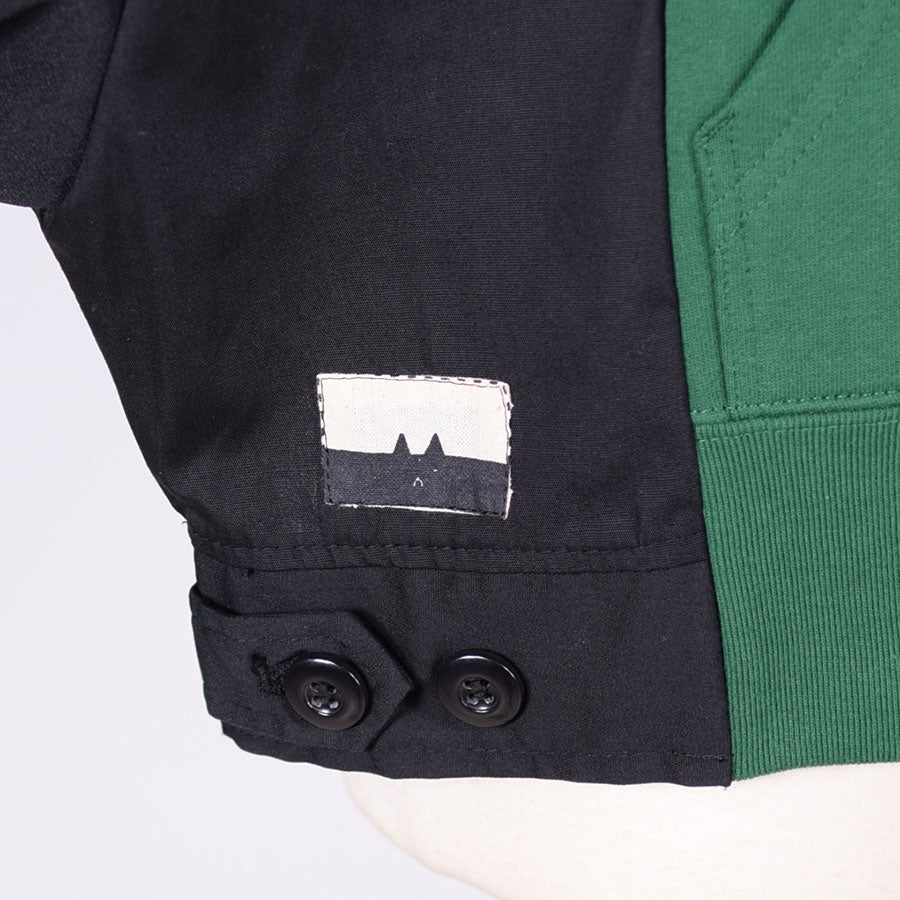 切替部分にはミリタリー風な生地、ディテールを取り入れ印象を引き締めています。