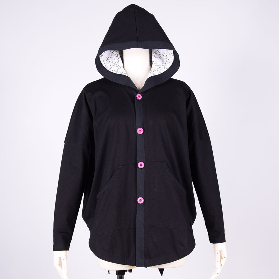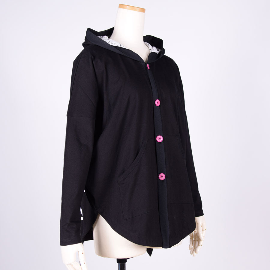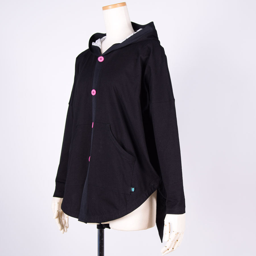 前開きにはボタンを採用しカーディガン風の柔らかい仕上げに。