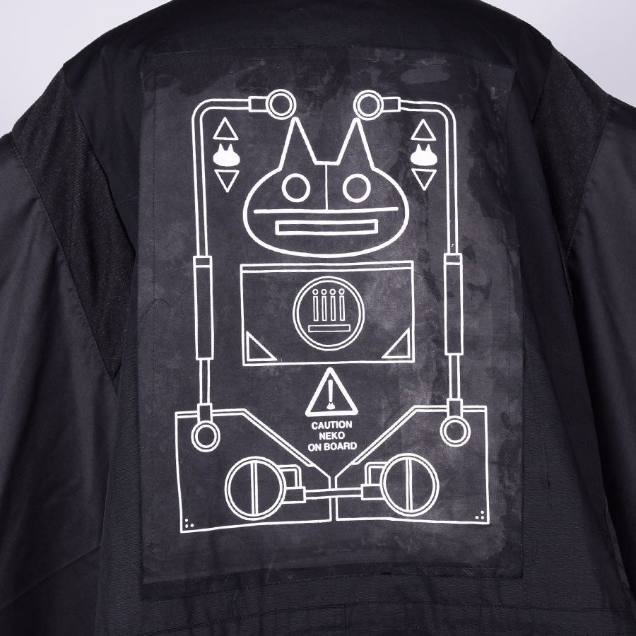背中や袖口には掠れたような加工のパッチが貼り付けられパンクのニュアンスもプラス。
