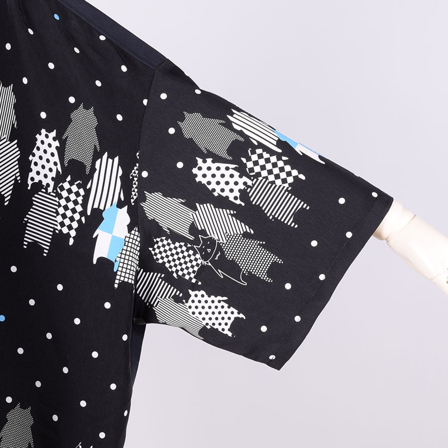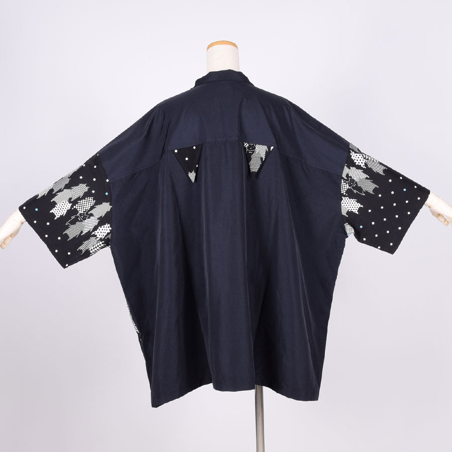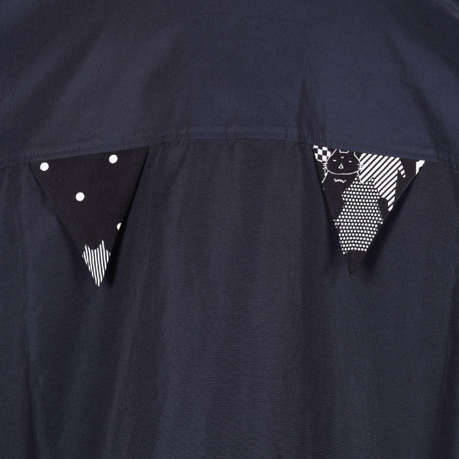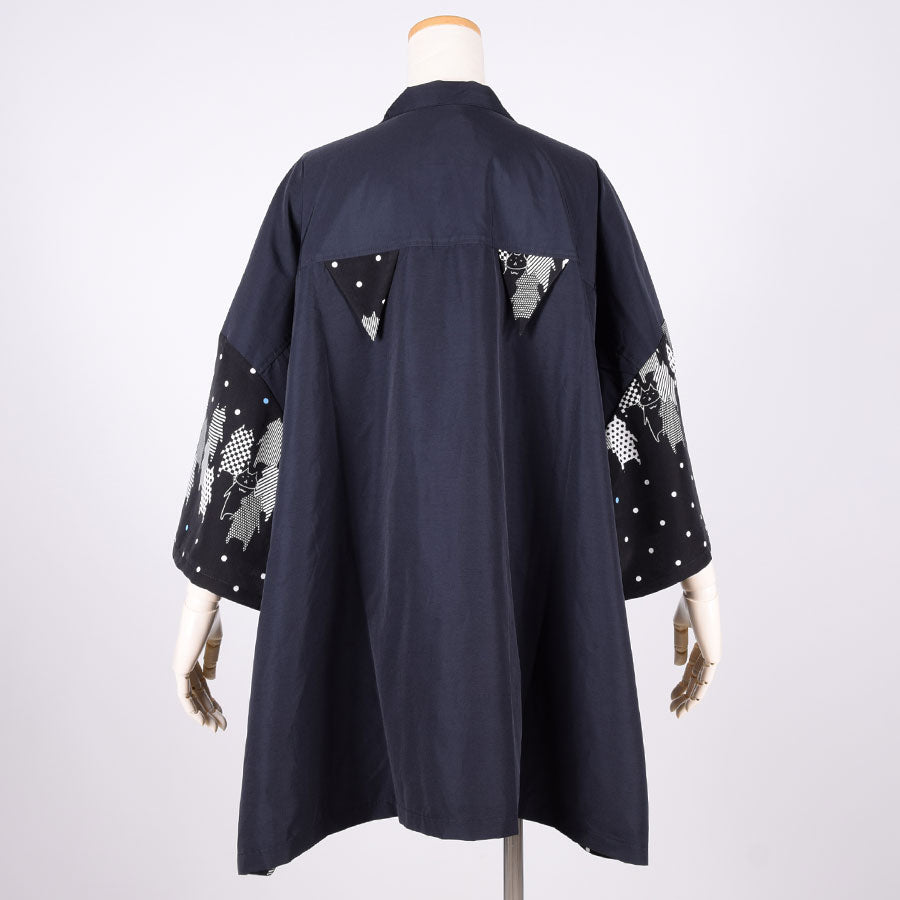前身頃と袖にはオリジナルテキスタイルを使用し、シルエットとグラフィック共にインパクトのあるデザインに仕上げました。