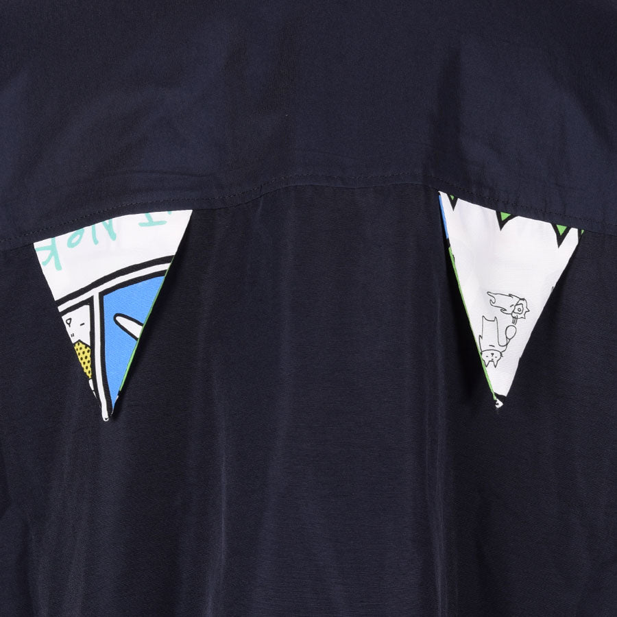 前身頃と袖にはオリジナルテキスタイルを使用し、シルエットとグラフィック共にインパクトのあるデザインに仕上げました。