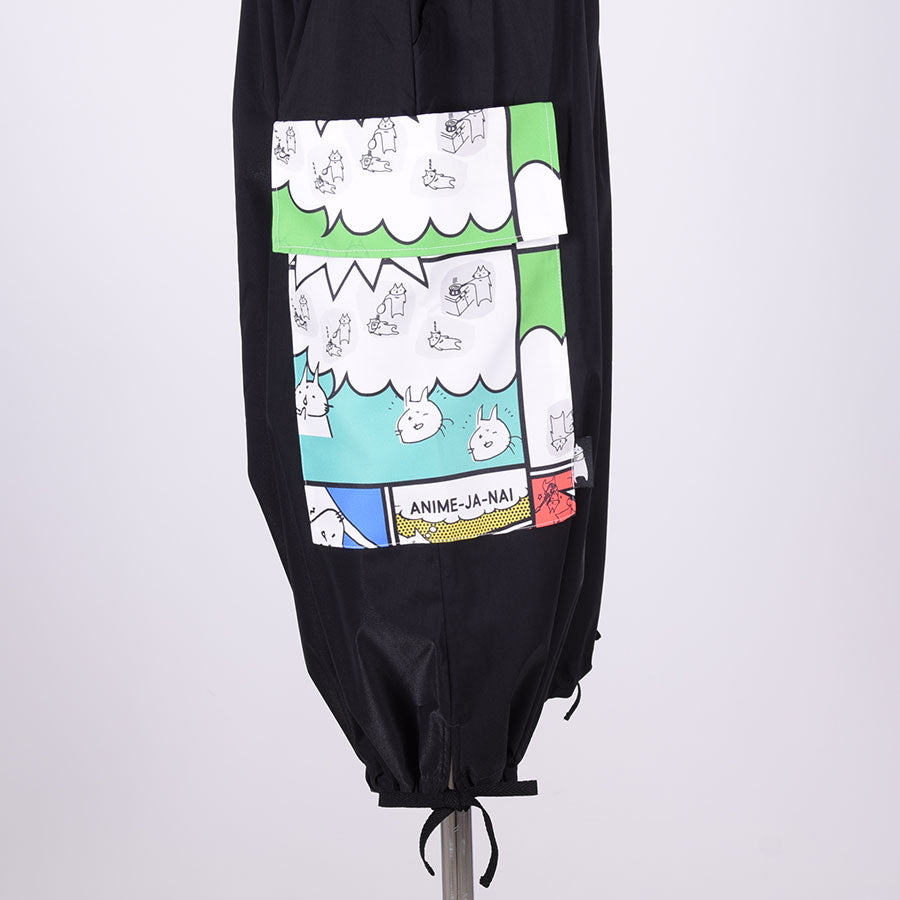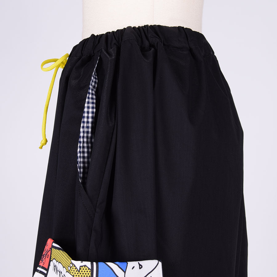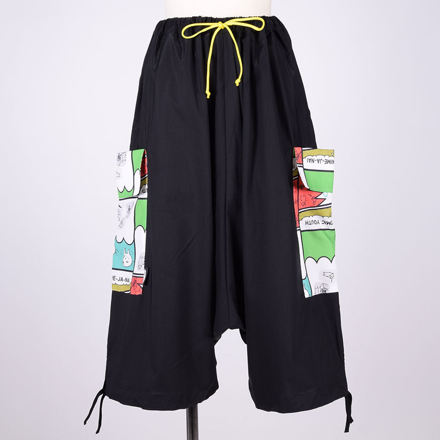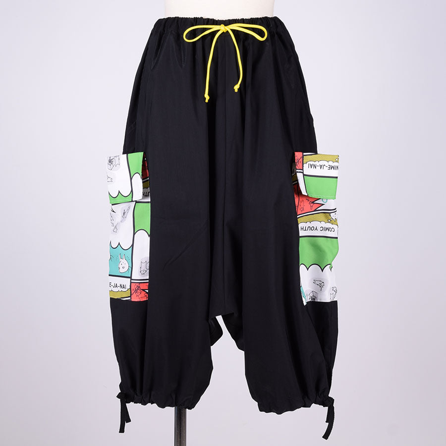 カーゴパンツ風の脇ポケットにはオリジナルテキスタイルを使用しアクセントに。