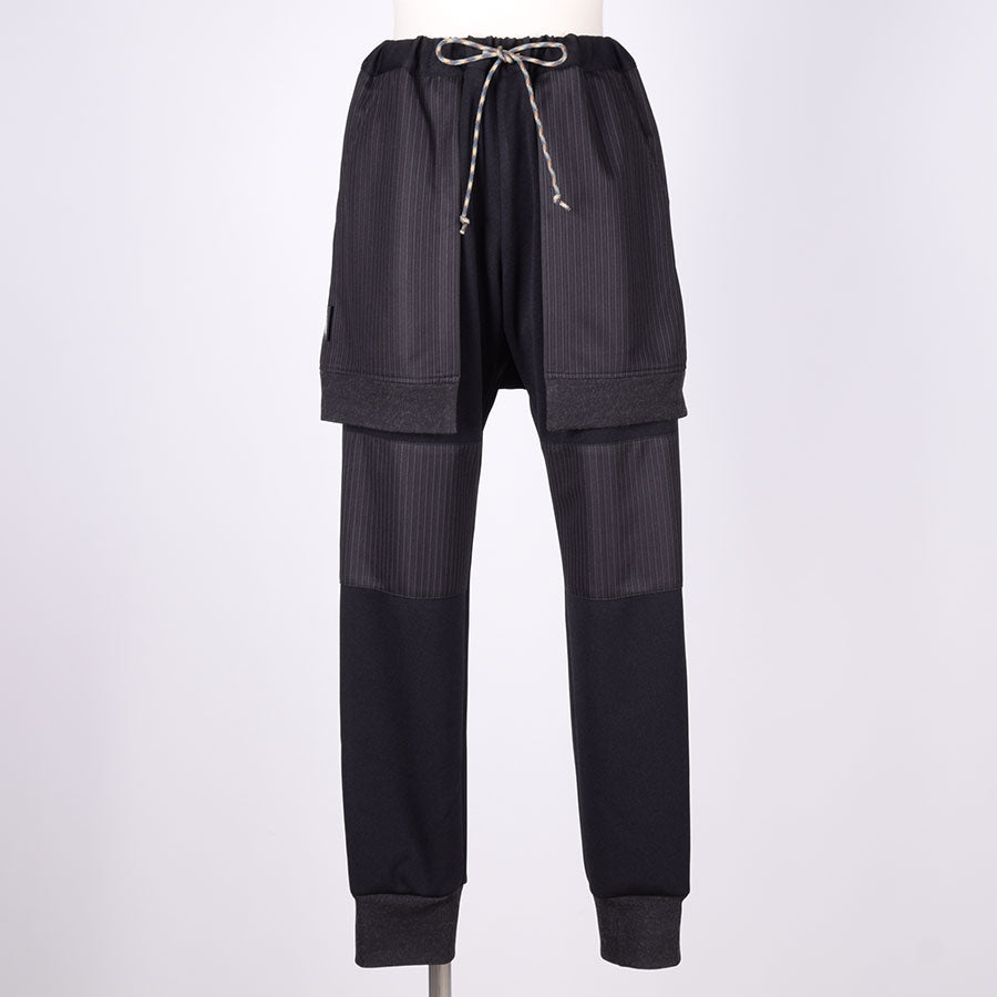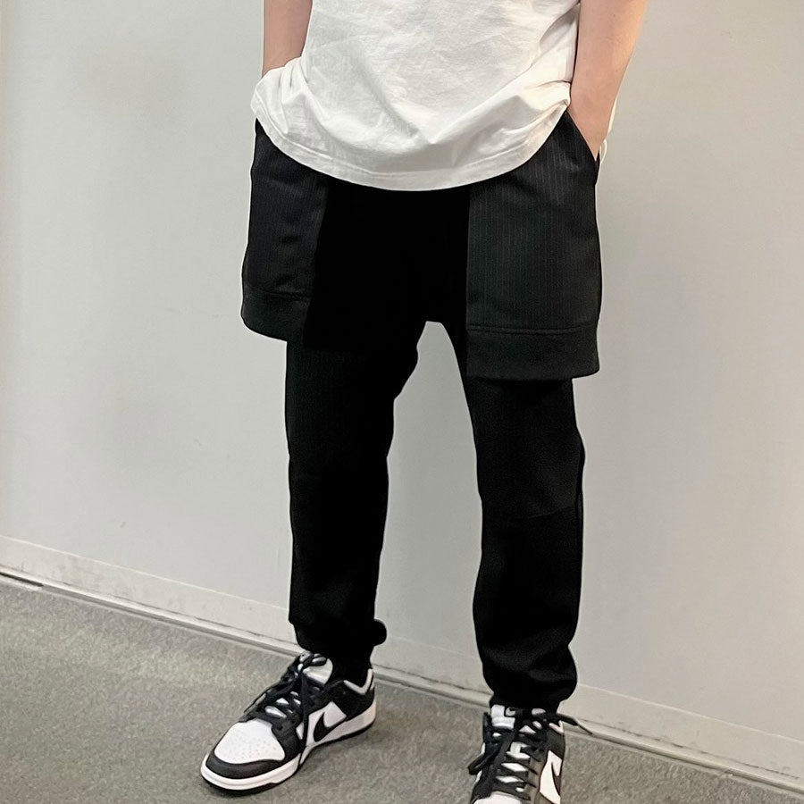 ジャージ生地をメインに異素材を組み合わせたジョガーパンツ。