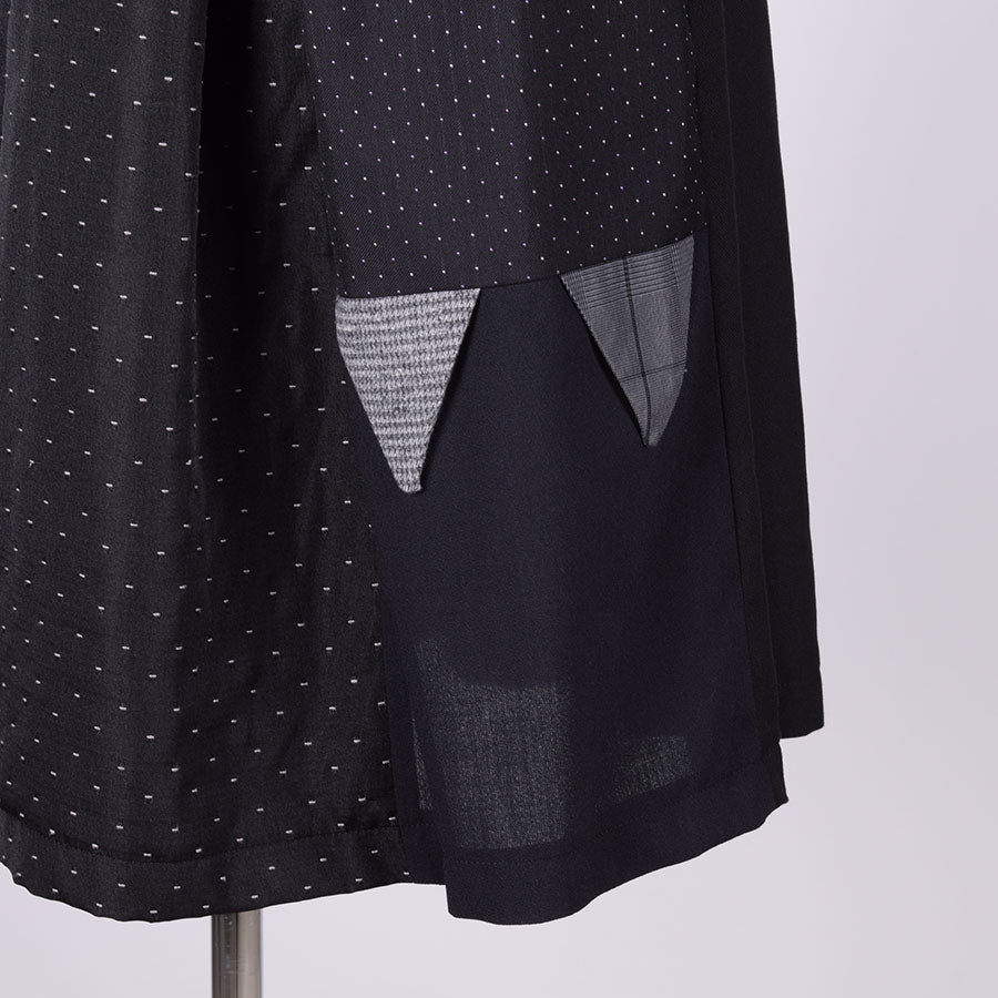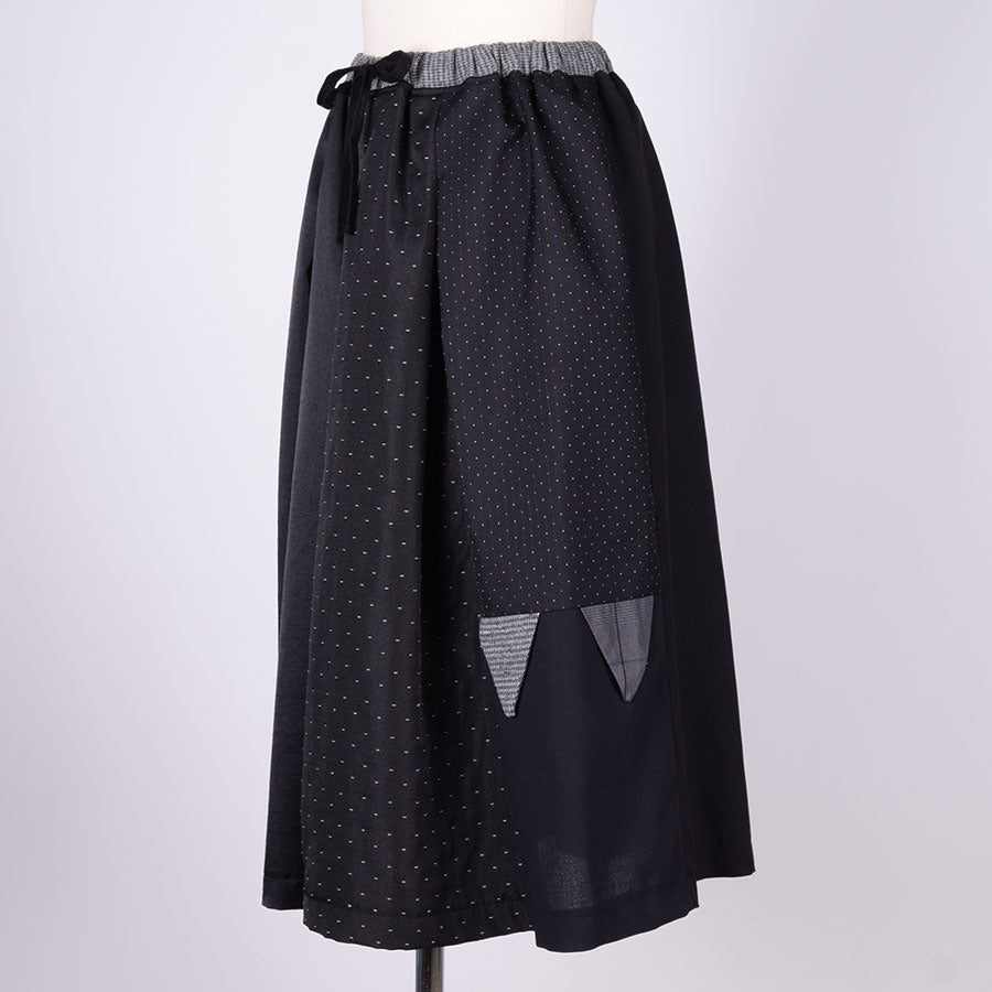 様々な生地をパッチワークして仕立てたスカート。
