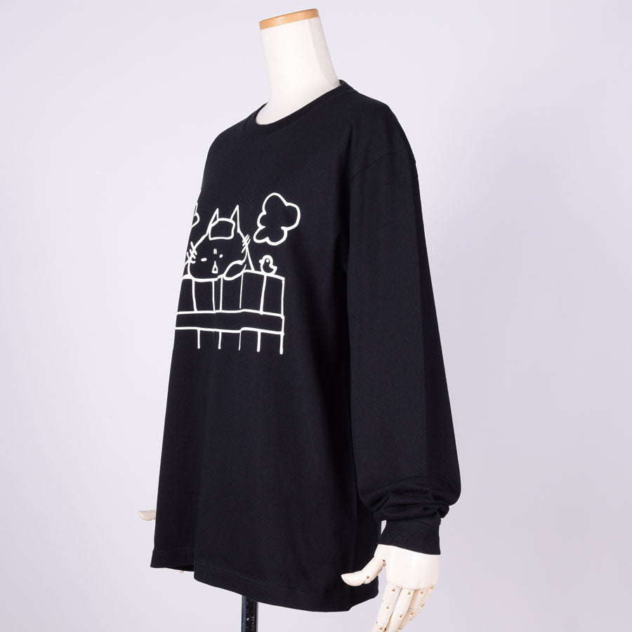MINT NeKO 吾輩の入浴ロンT BK-WH・L