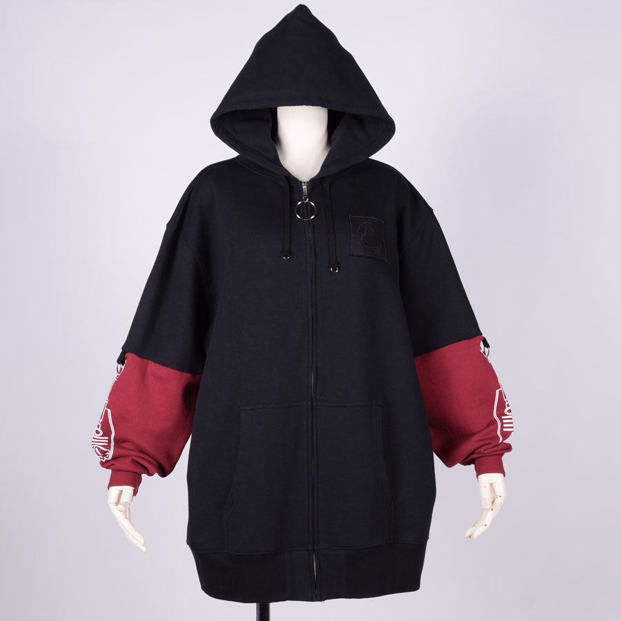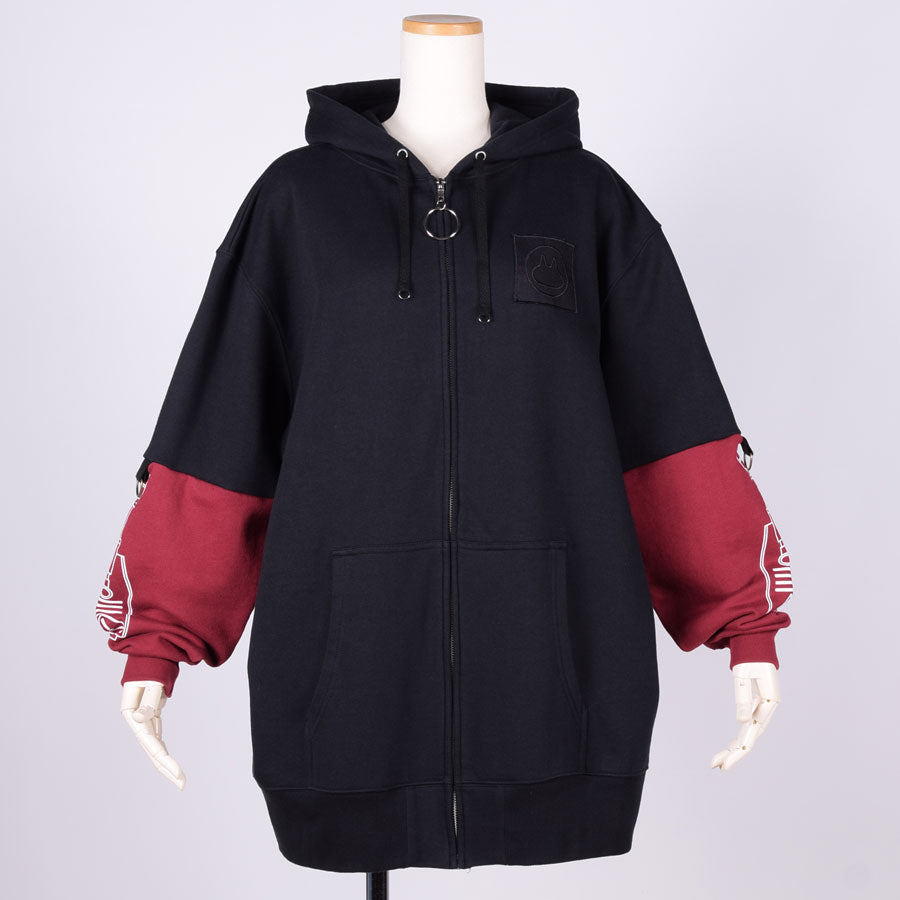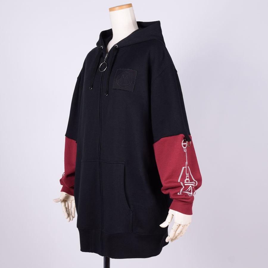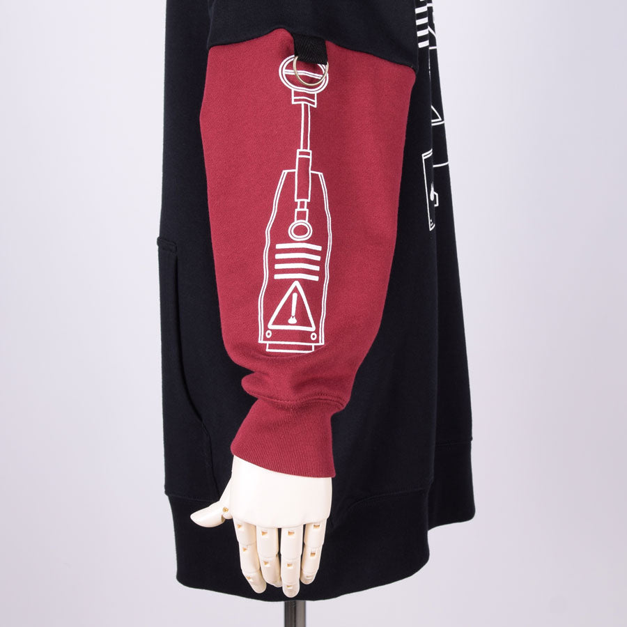 ロボットやプラモデルのパーツをイメージしたグラフィックをBIGシルエットのパーカーにプリントしています。
