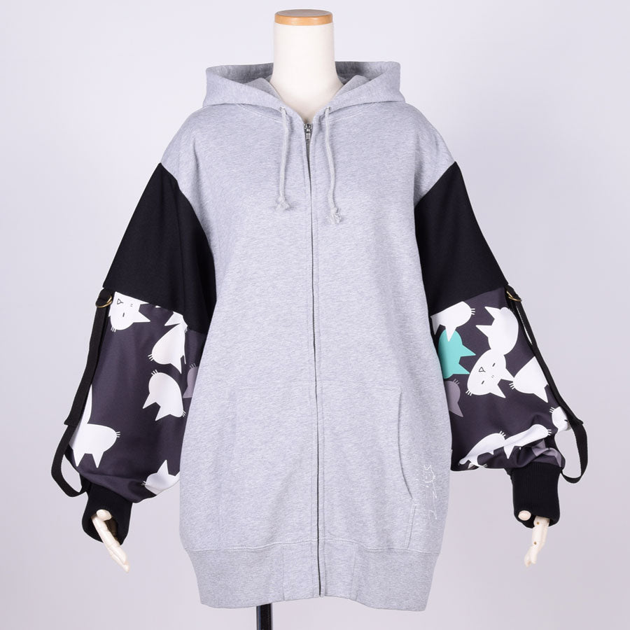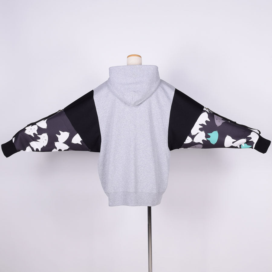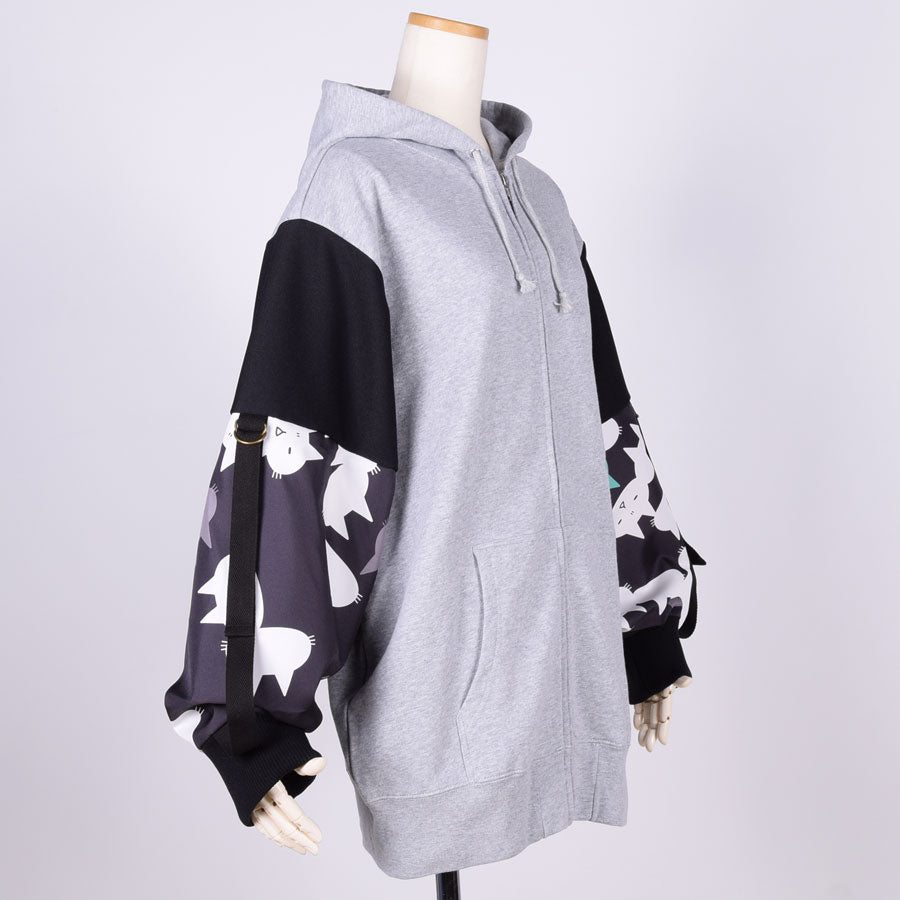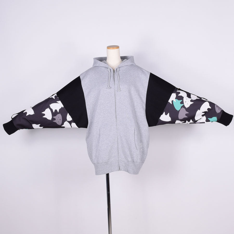 袖をオリジナルテキスタイルで切り替えたジップアップタイプのパーカーです。