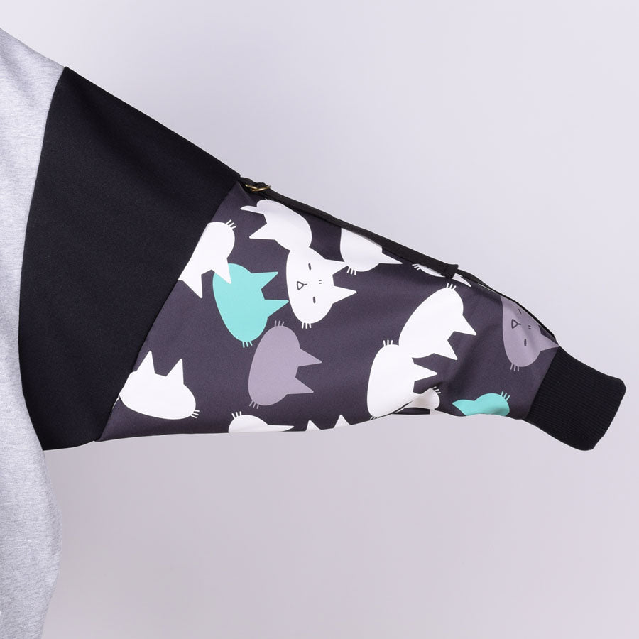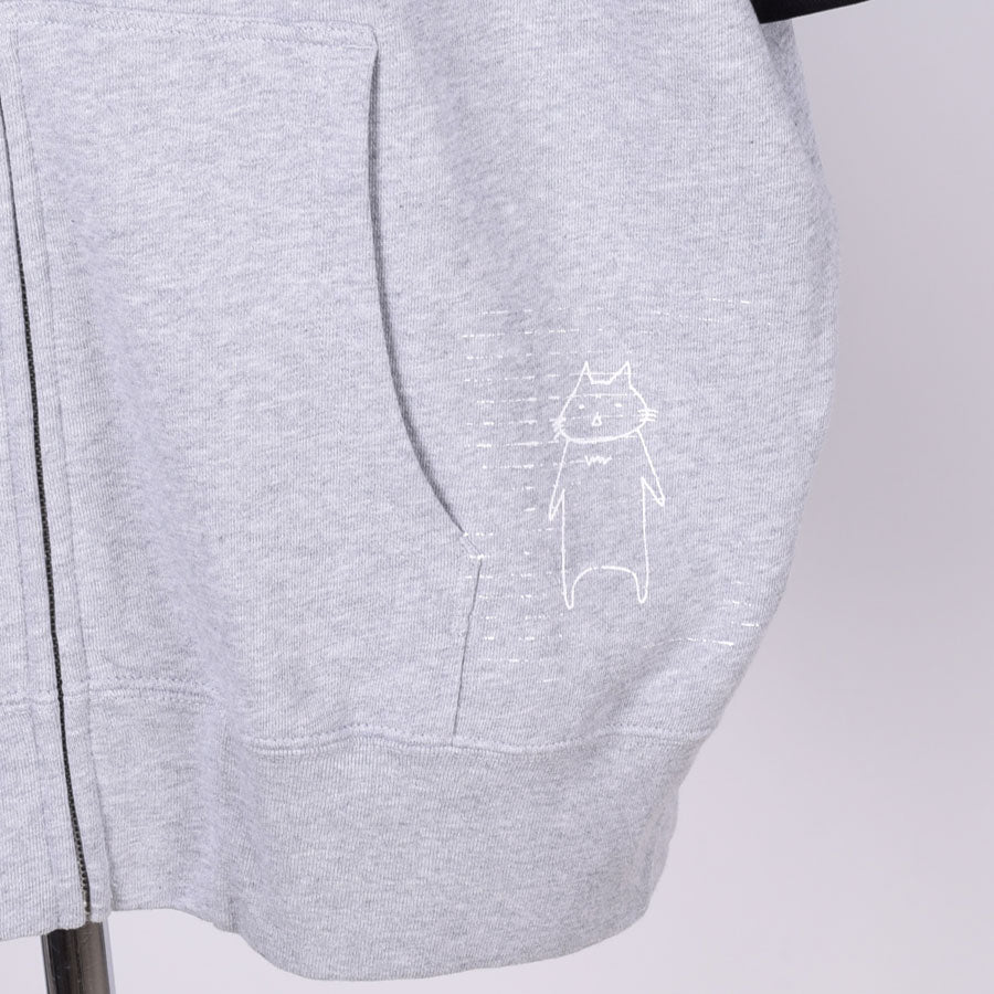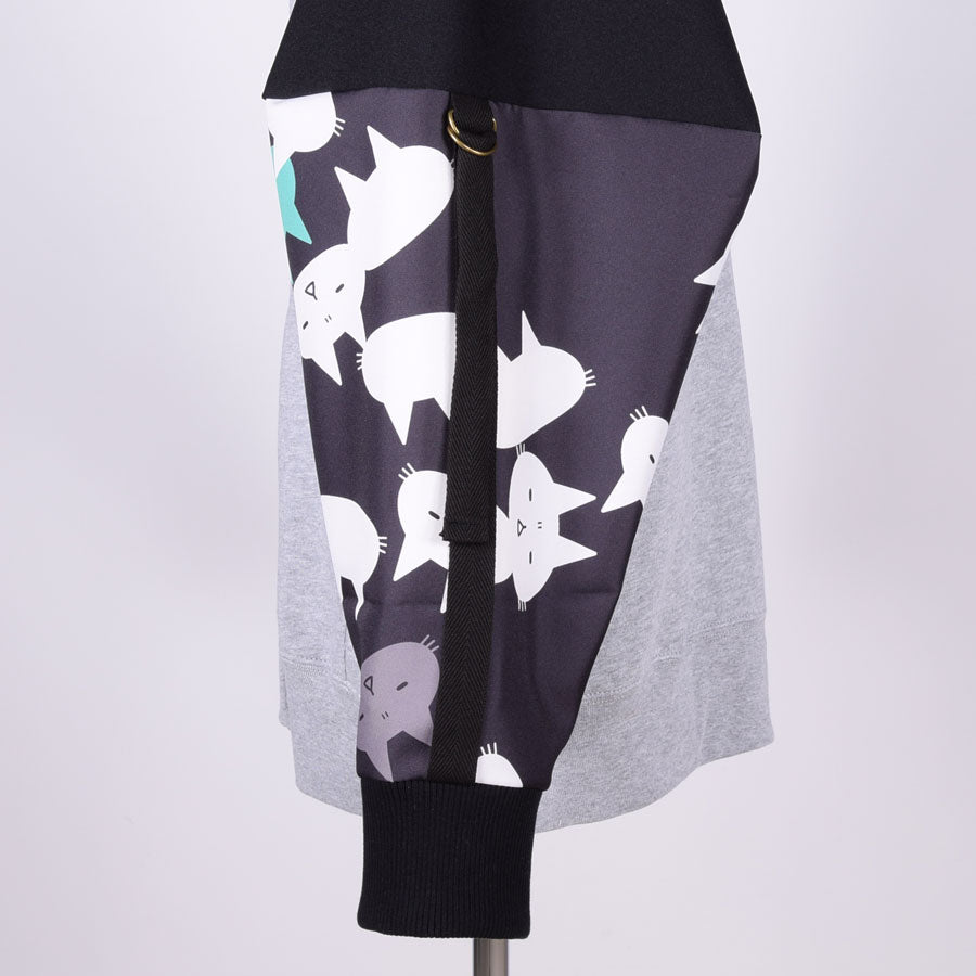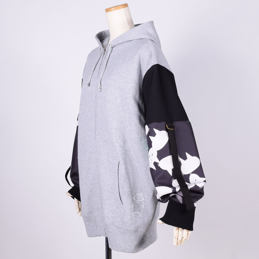 袖をオリジナルテキスタイルで切り替えたジップアップタイプのパーカーです。