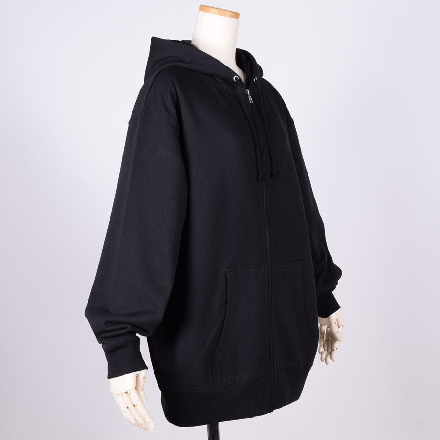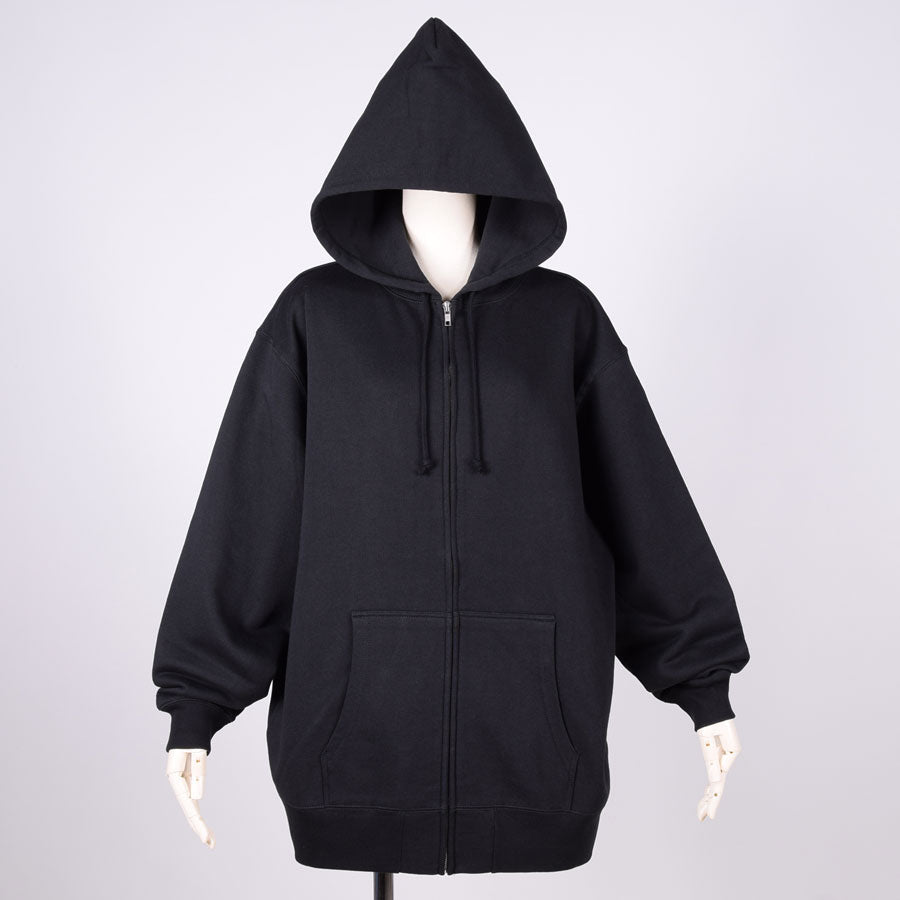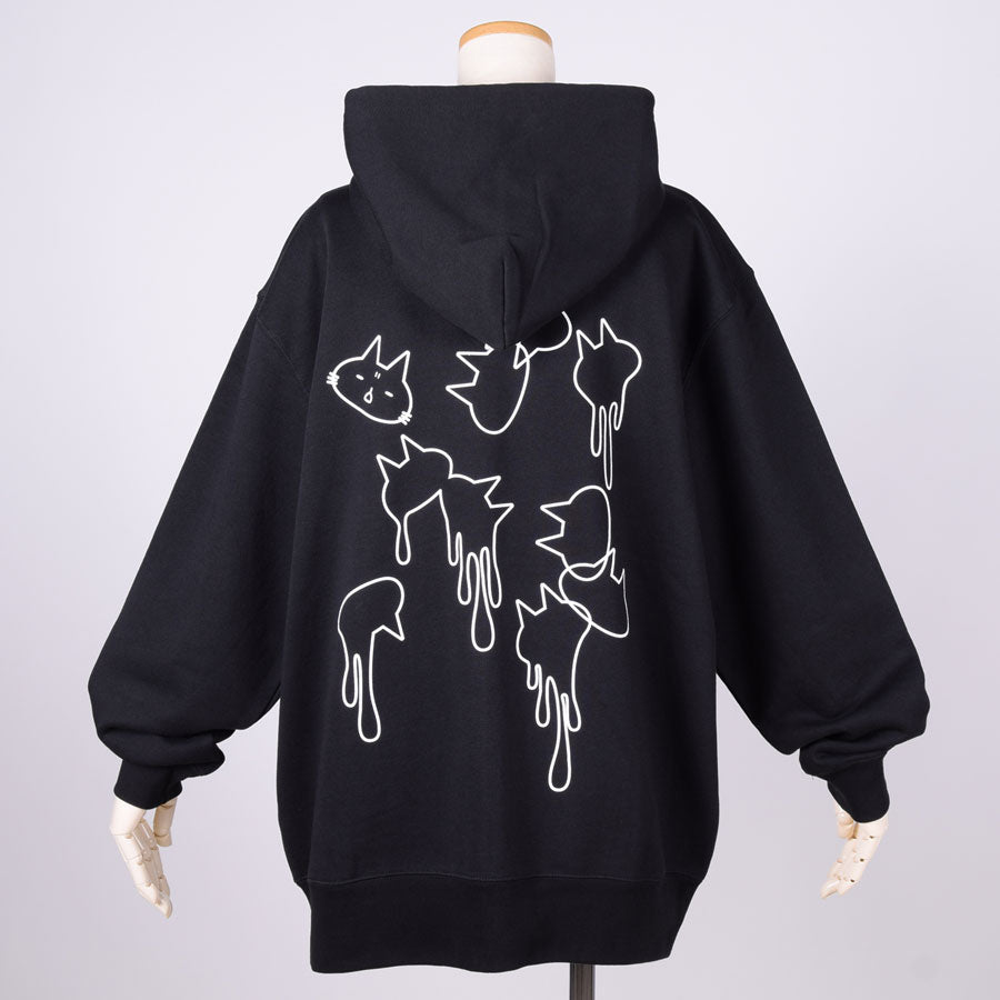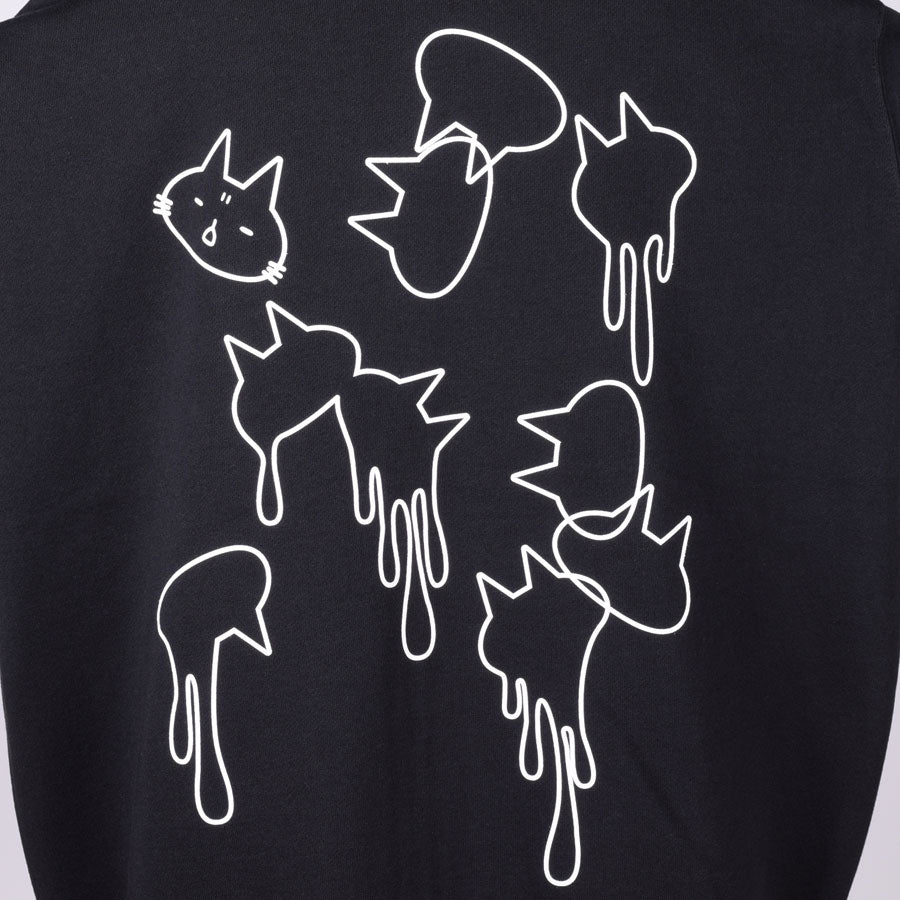 ネコのシルエットが溶けてしまったようなグラフィックを背中に大判プリントしたスウェットパーカー。
