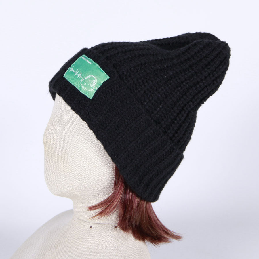 MINT NeKO ヘッドホンパッチニットキャップ BK-GRN
