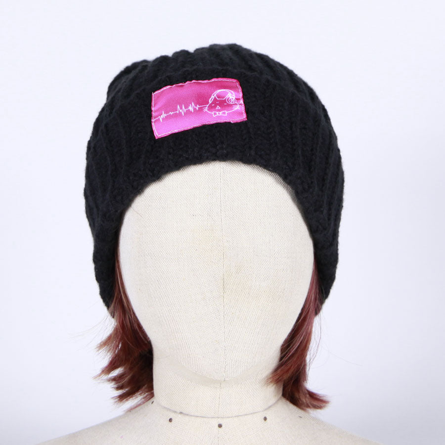 MINT NeKO ヘッドホンパッチニットキャップ BK-PK