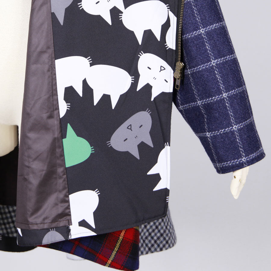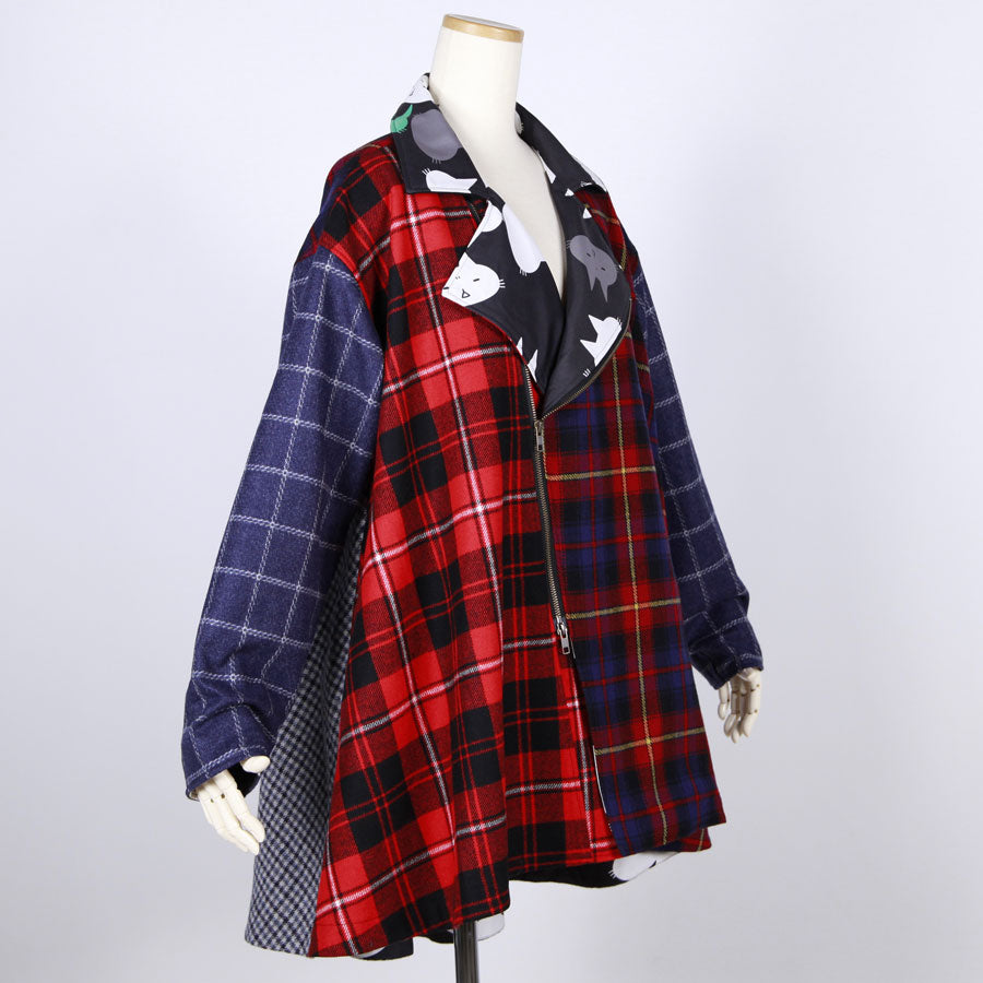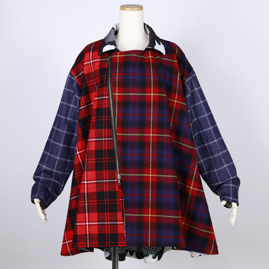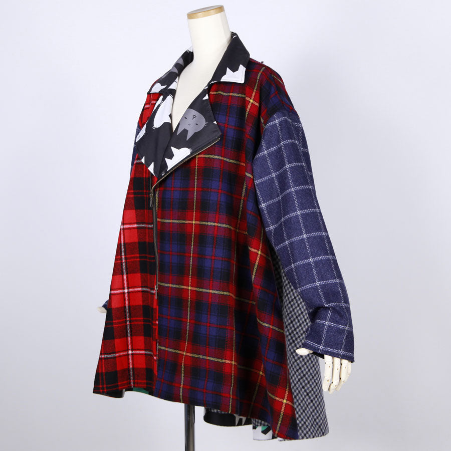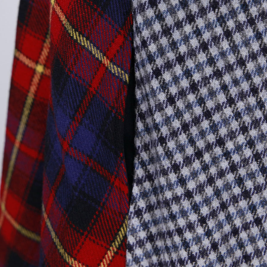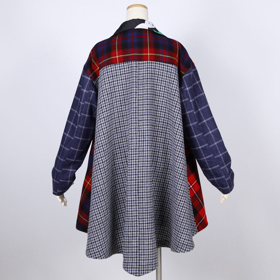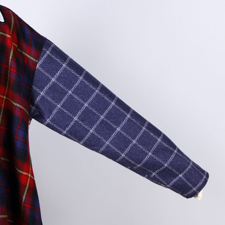 パーツごとに様々なチェック生地を使用したパッチワークスタイルのアイテムです。