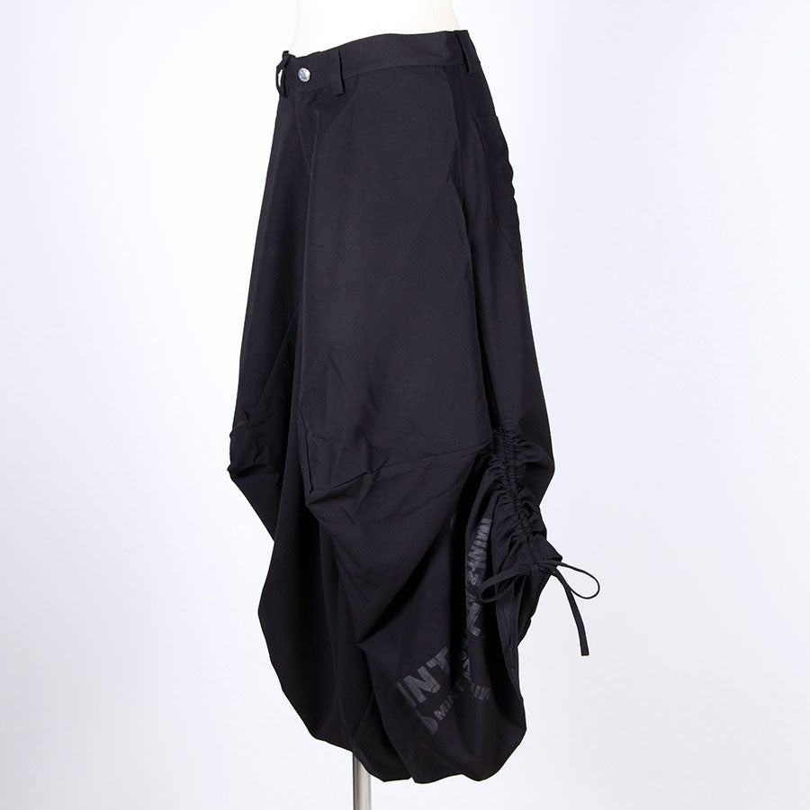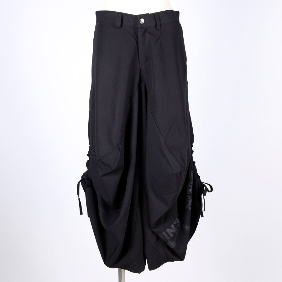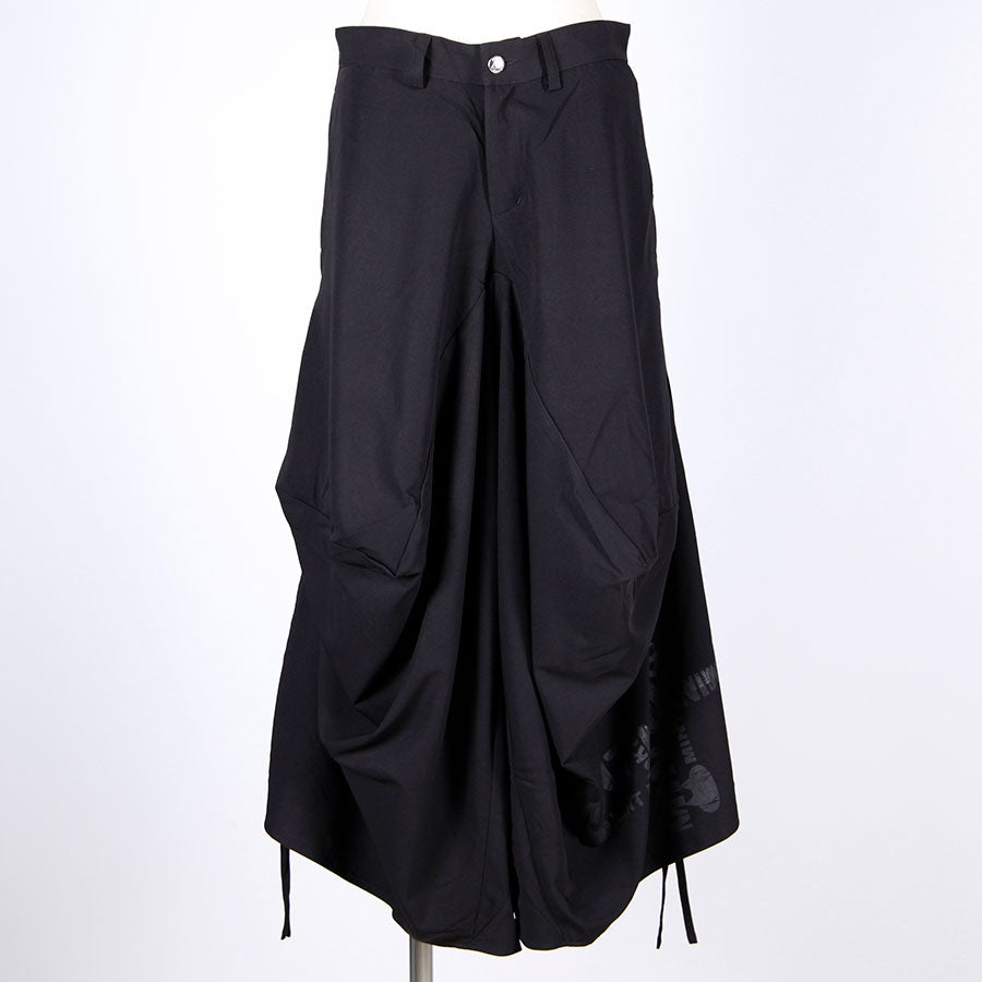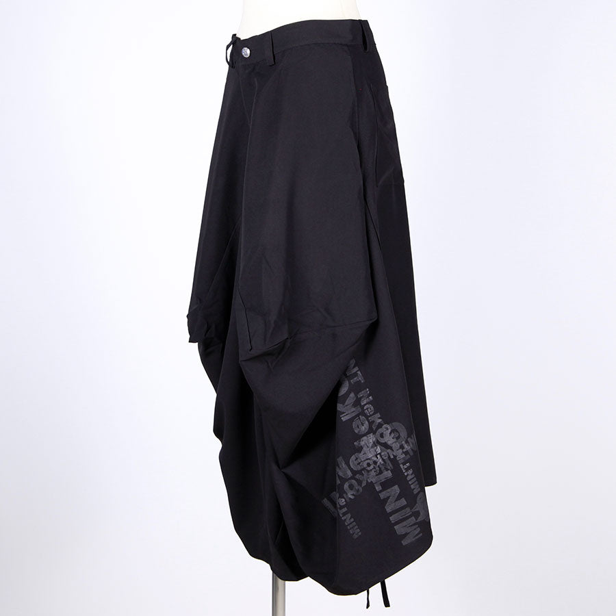ブランド定番の立体変形サルエルパンツにプリント加工を加えたアイテム。