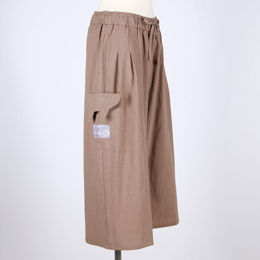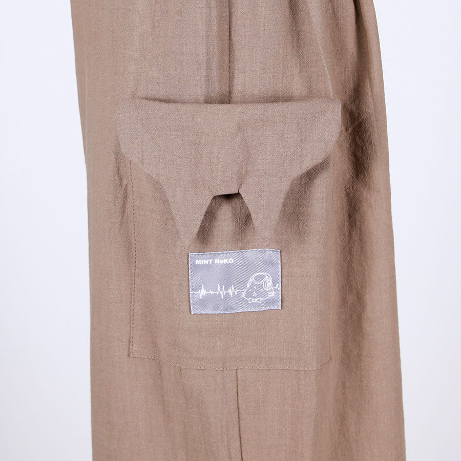 サイドのカーゴポケットには、ネコのシルエットをかたどったフラップデザインを採用。