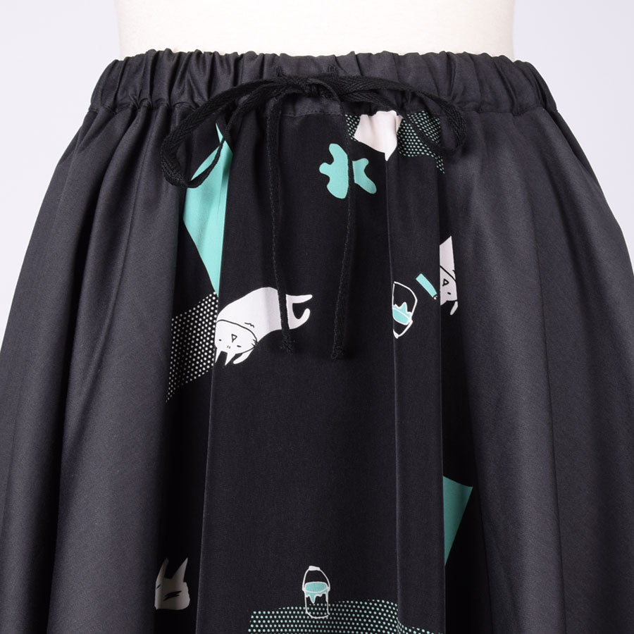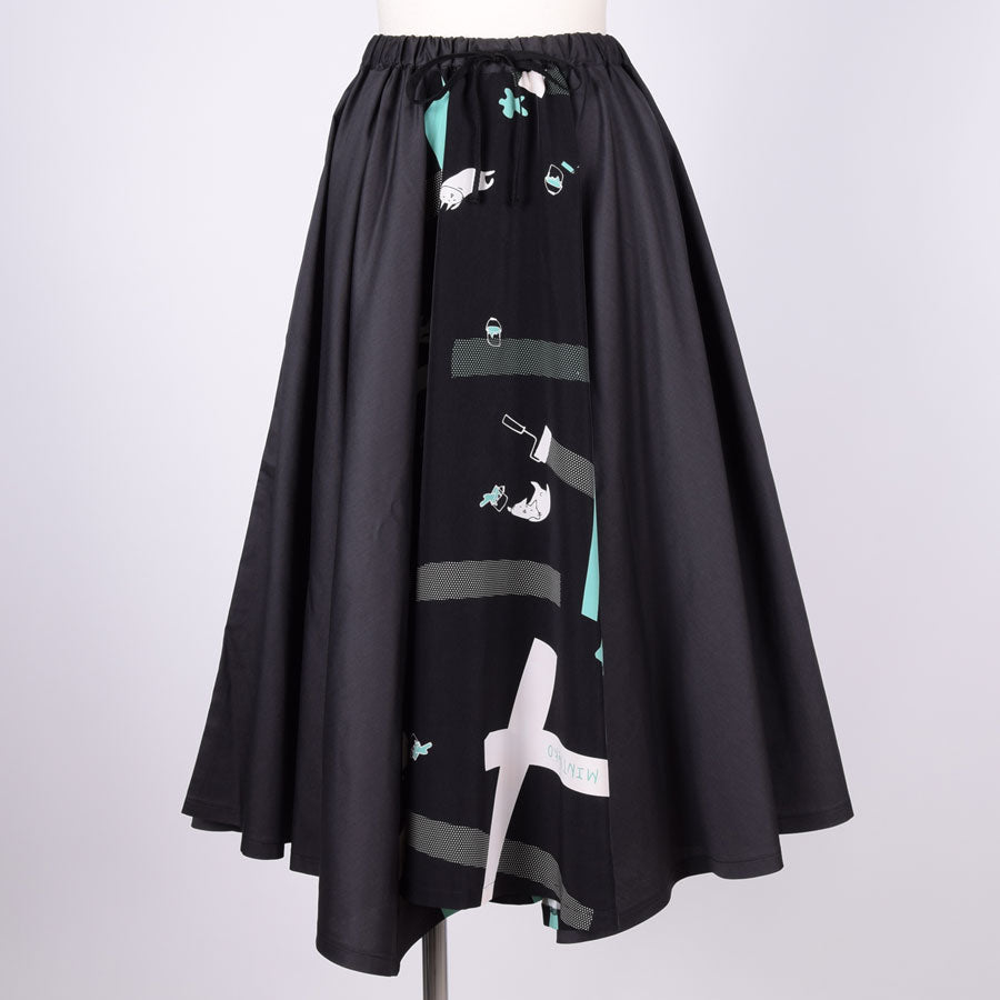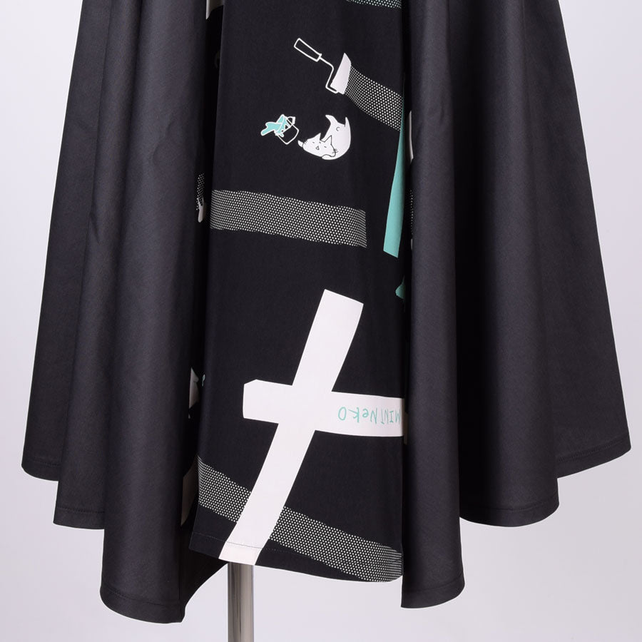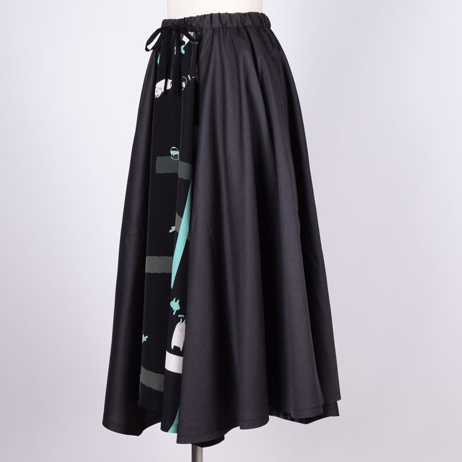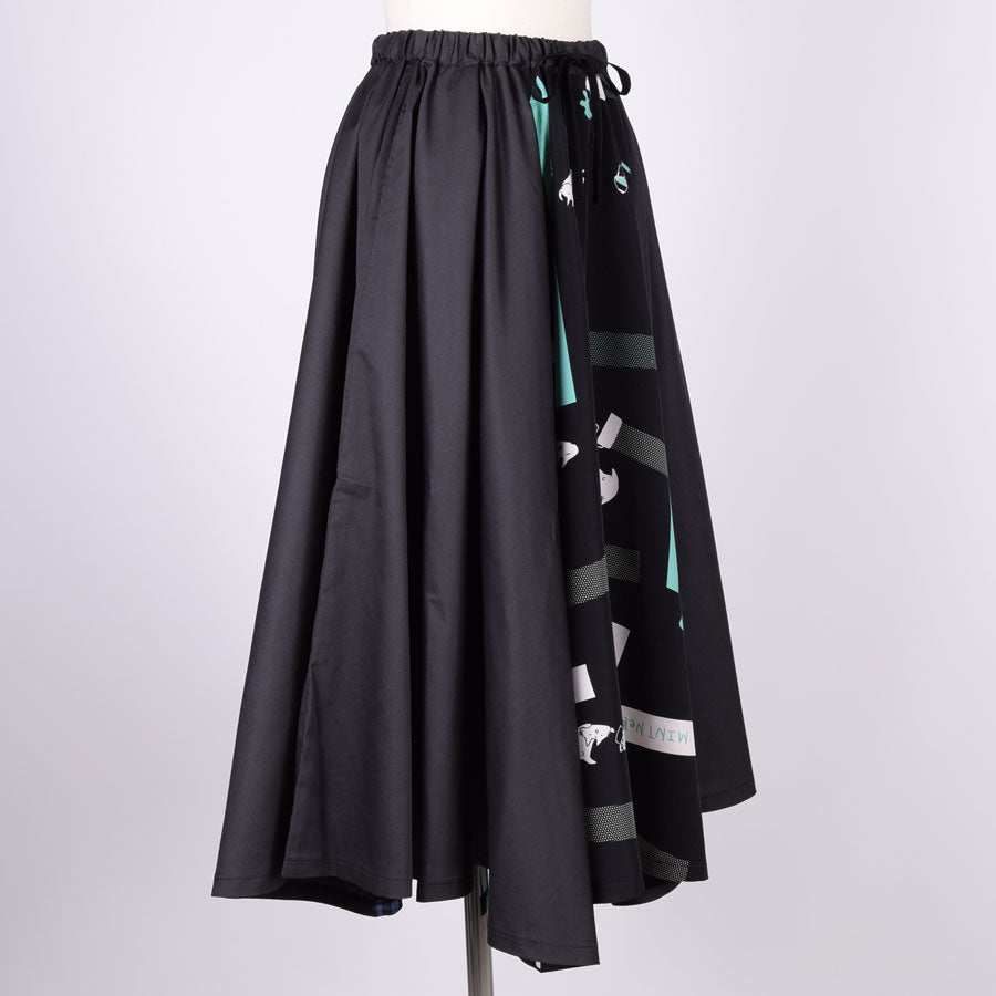 MINT NeKO パッチワークフレアスカート BK-GRN