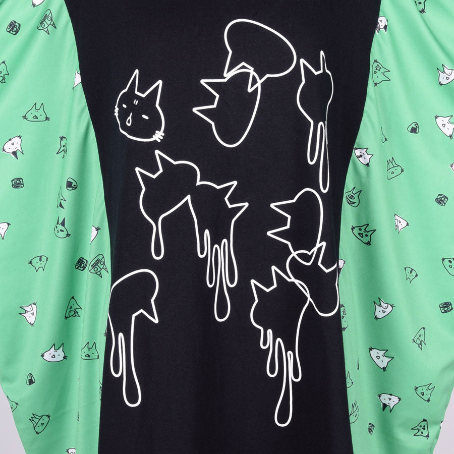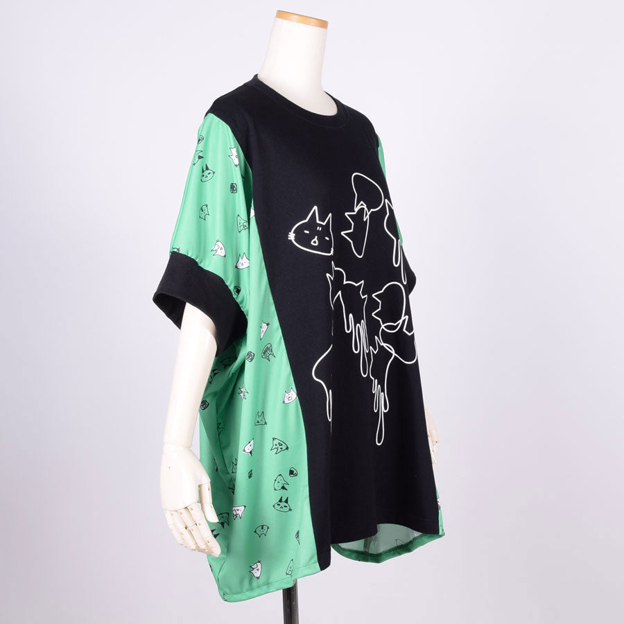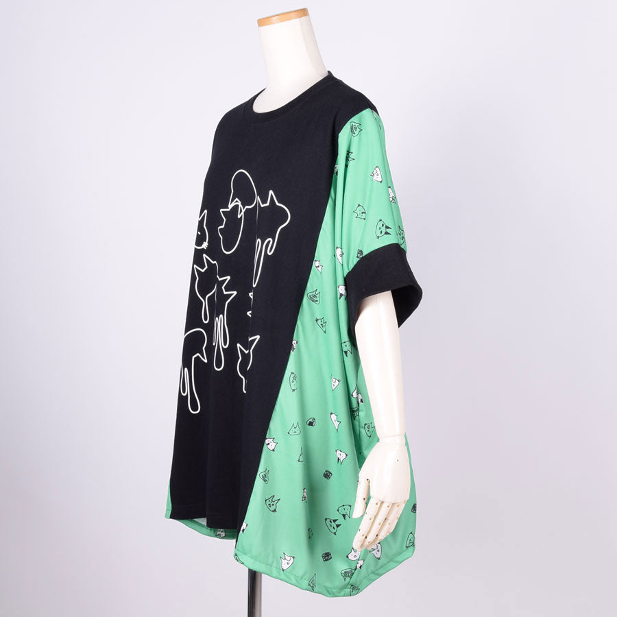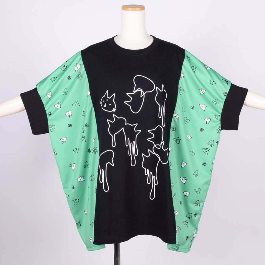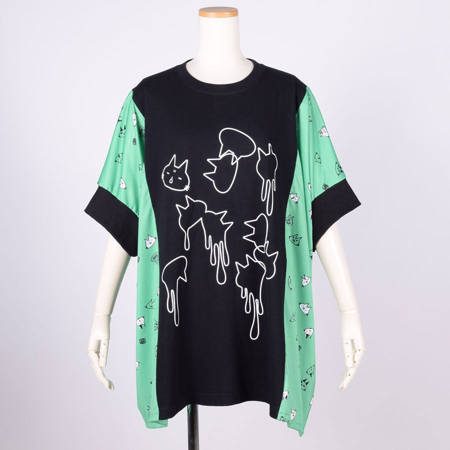 MINT NeKO どろどろワイドカットソー BK-GRN
