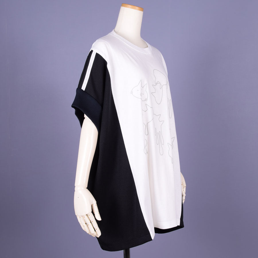 コットン天竺、ジャージ、リブと複数のマテリアルを組み合わせて仕立てたMINT NeKOらしいアイテム。