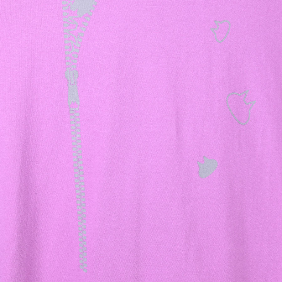 ビッグシルエットのボディに合わせて、ファスナーをイメージしたグラフィックを大判サイズでプリントしています。