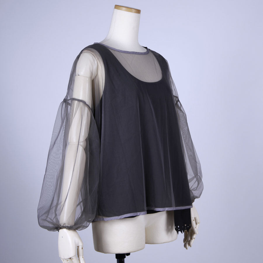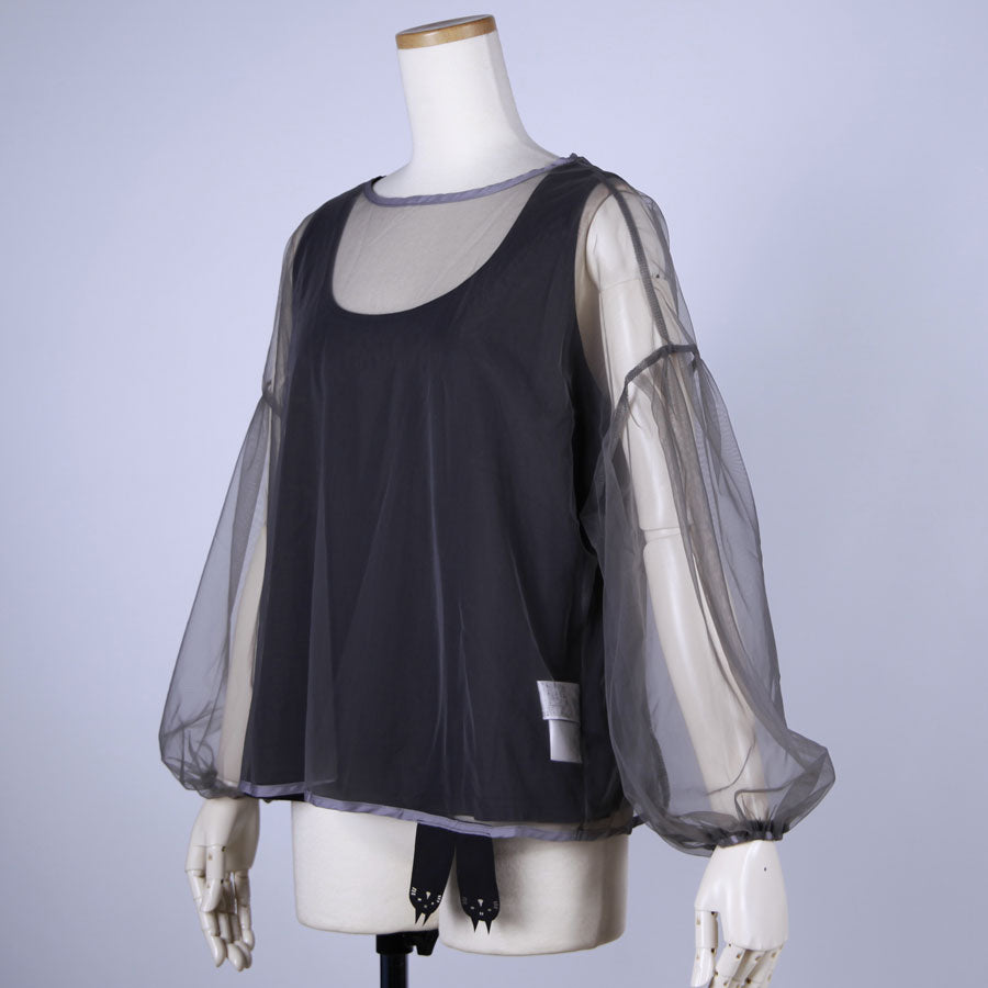 シースルー素材を使用して仕立てたプルオーバータイプのシャツ。