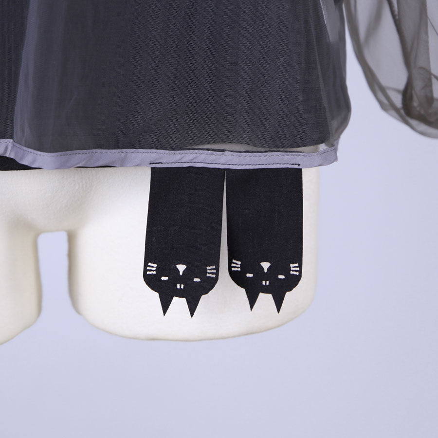 内側にはネコ型にレーザーカット加工を施したテープを縫い付けて色んなところからのぞかせています。