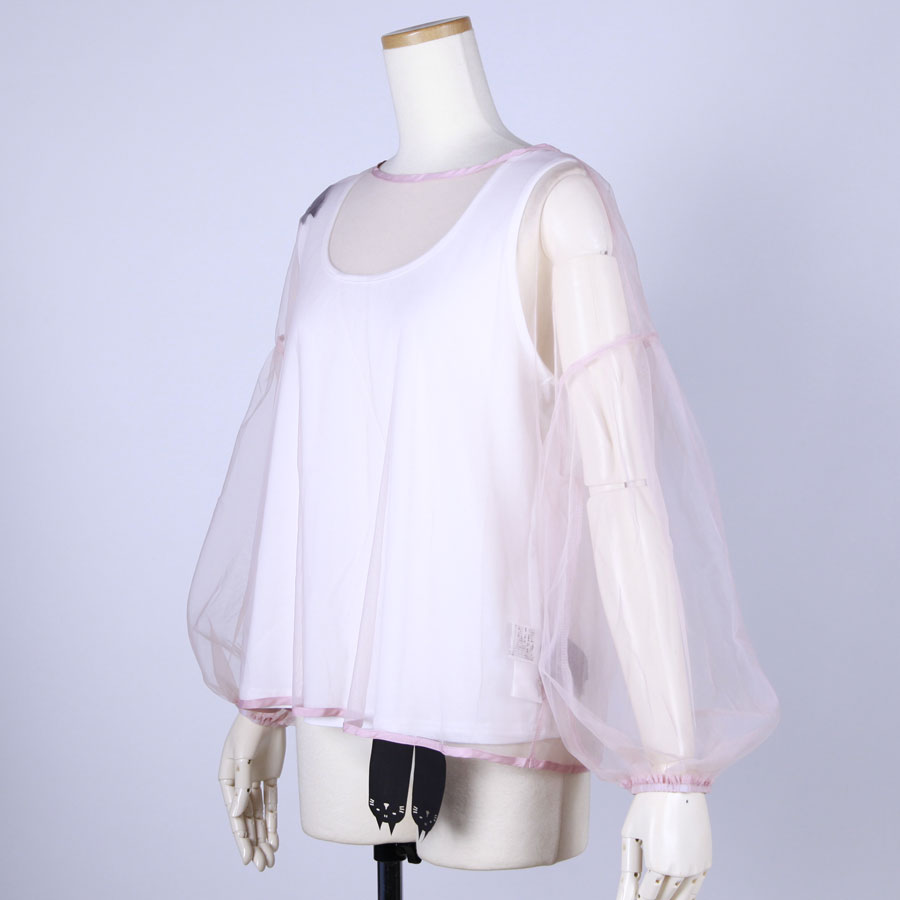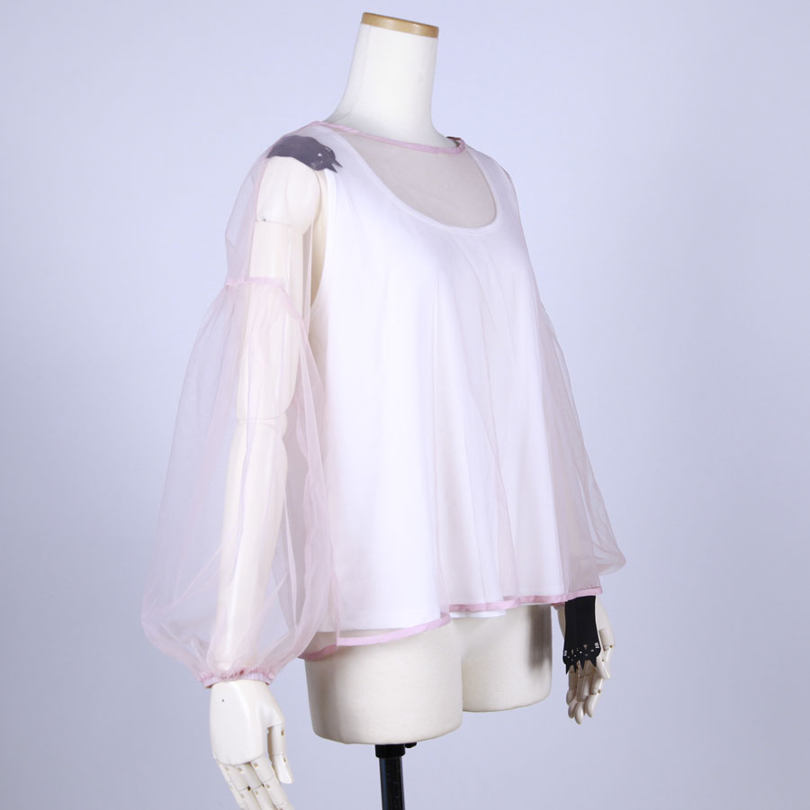 シースルー素材を使用して仕立てたプルオーバータイプのシャツ。