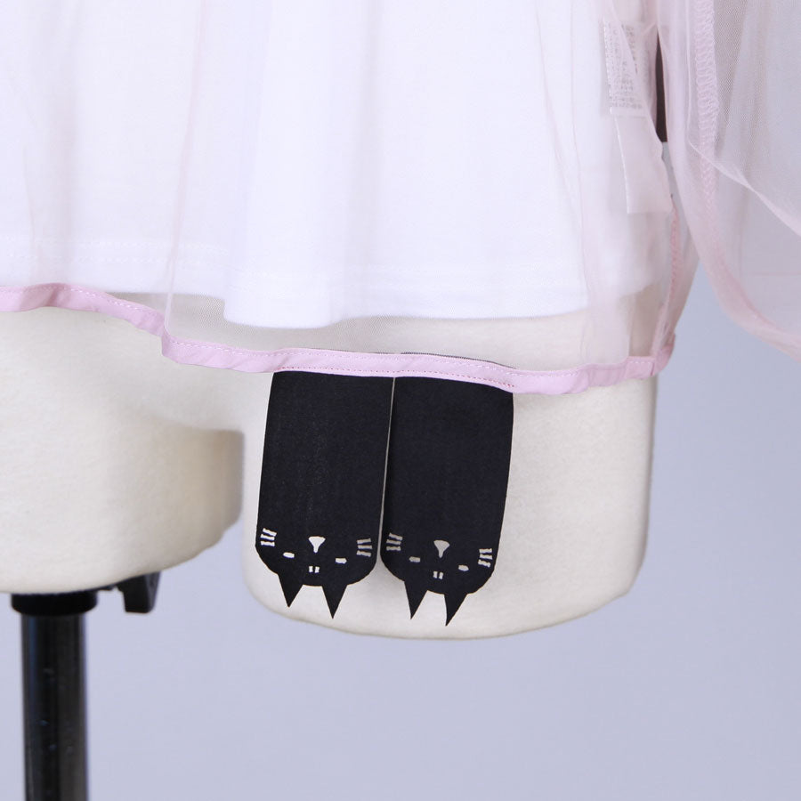内側にはネコ型にレーザーカット加工を施したテープを縫い付けて色んなところからのぞかせています。