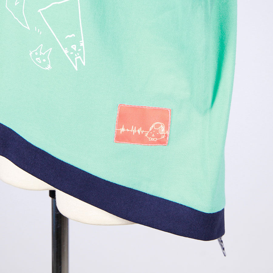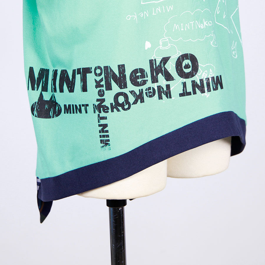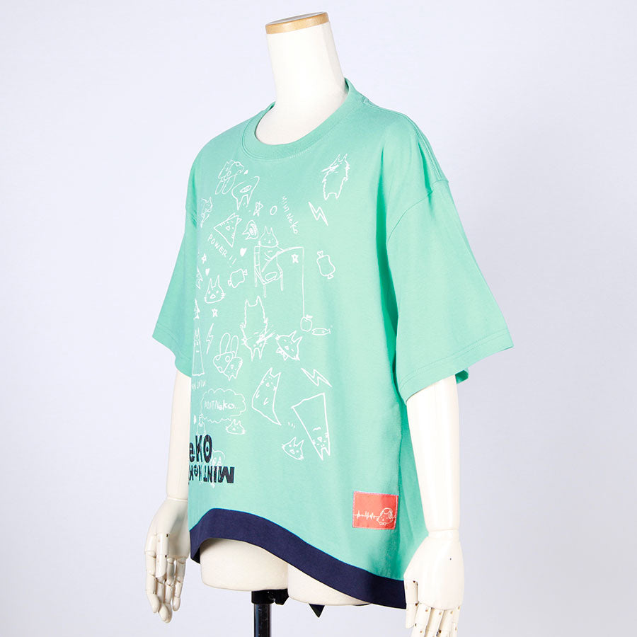 曲線を描く裾にリブとネコミミが切り替えられたカットソー。