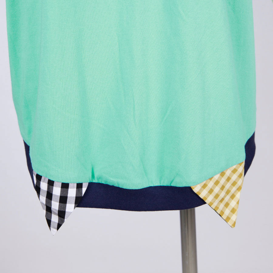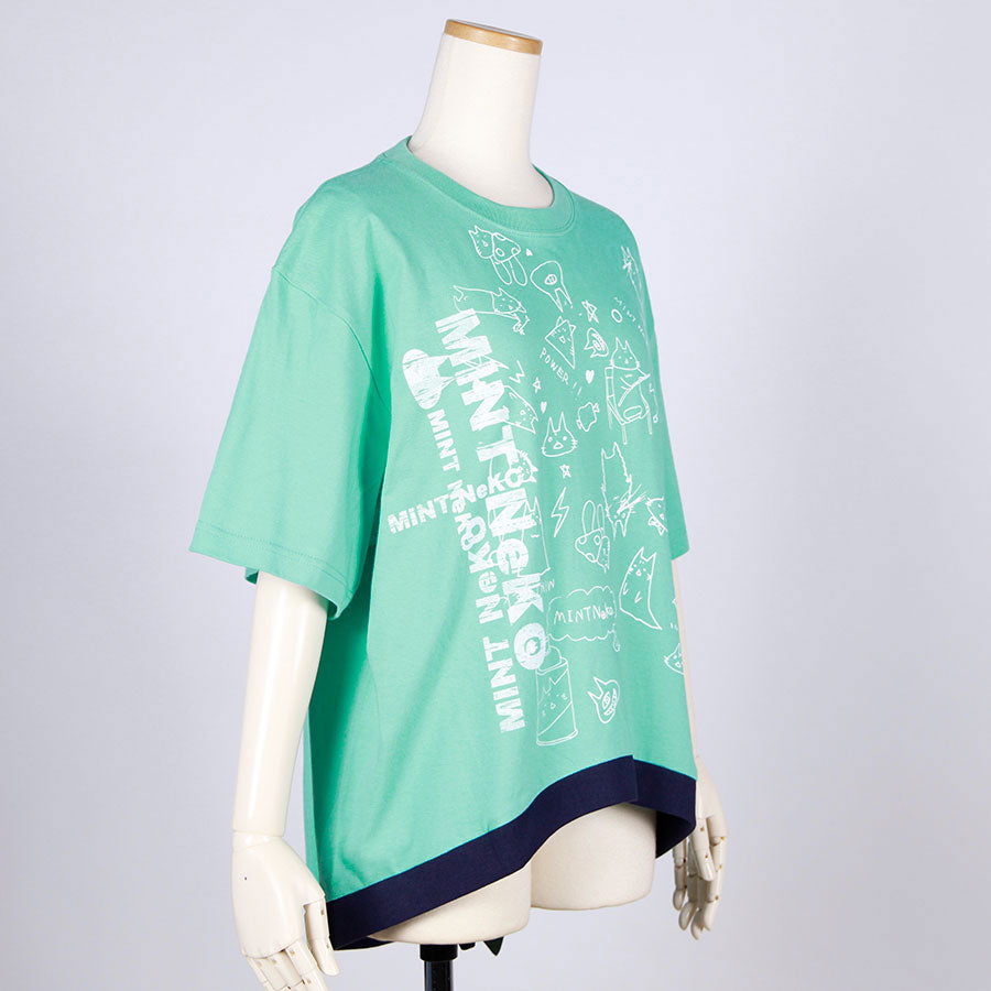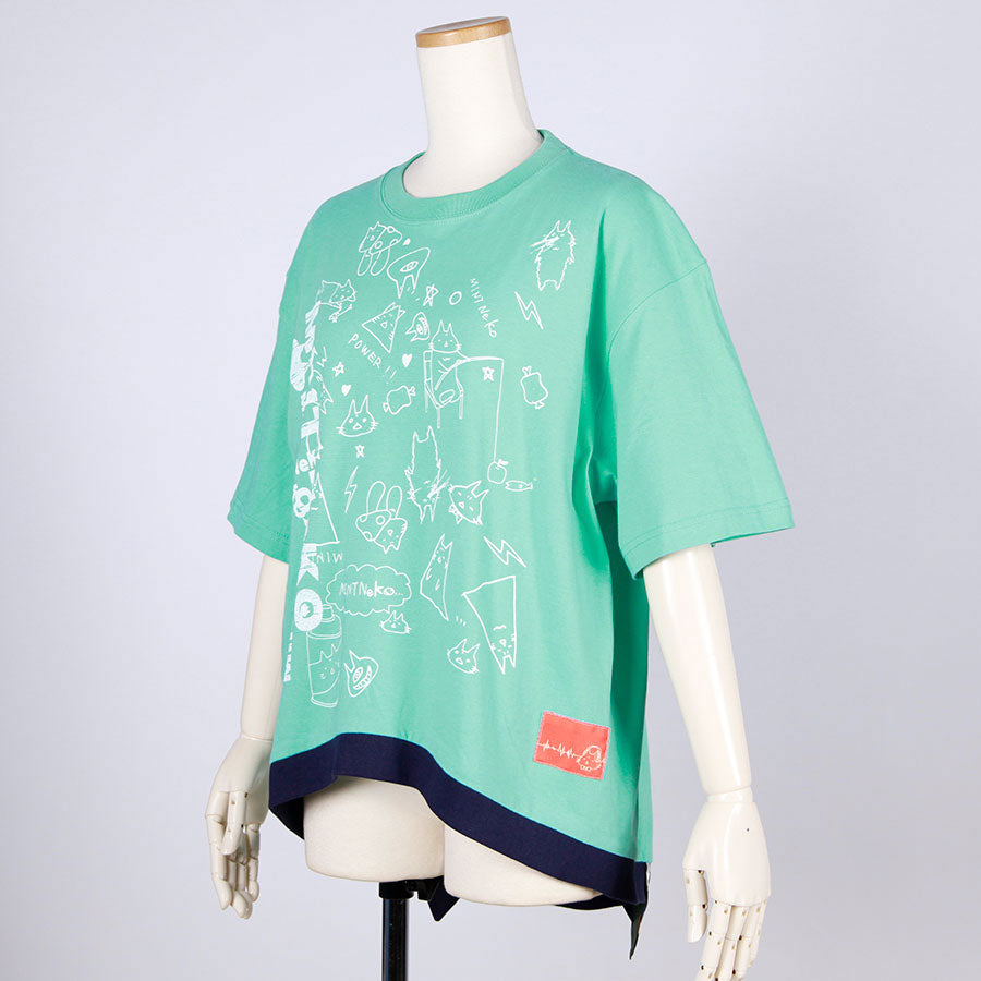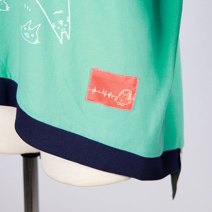 曲線を描く裾にリブとネコミミが切り替えられたカットソー。