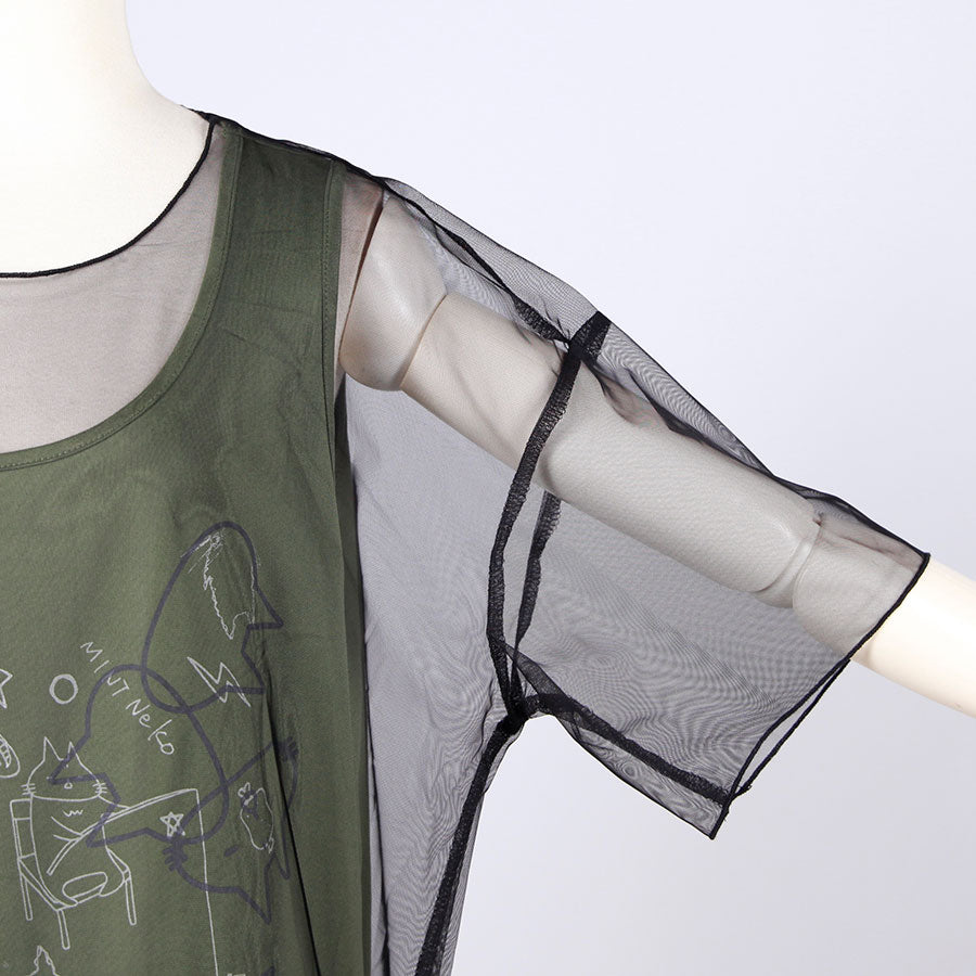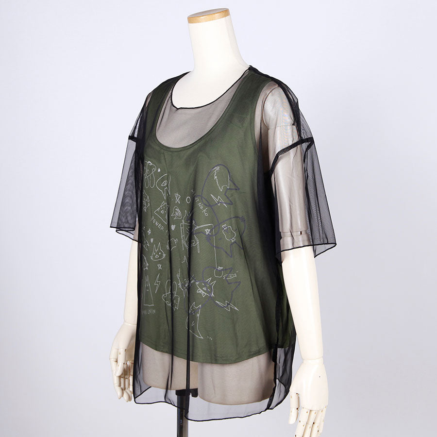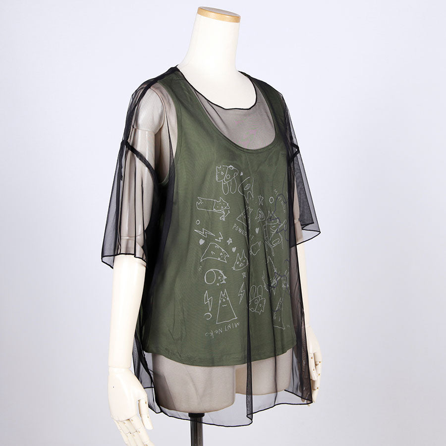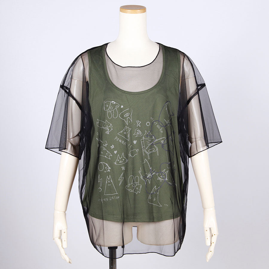 MINT NeKO シースルーレイヤードカットソー E