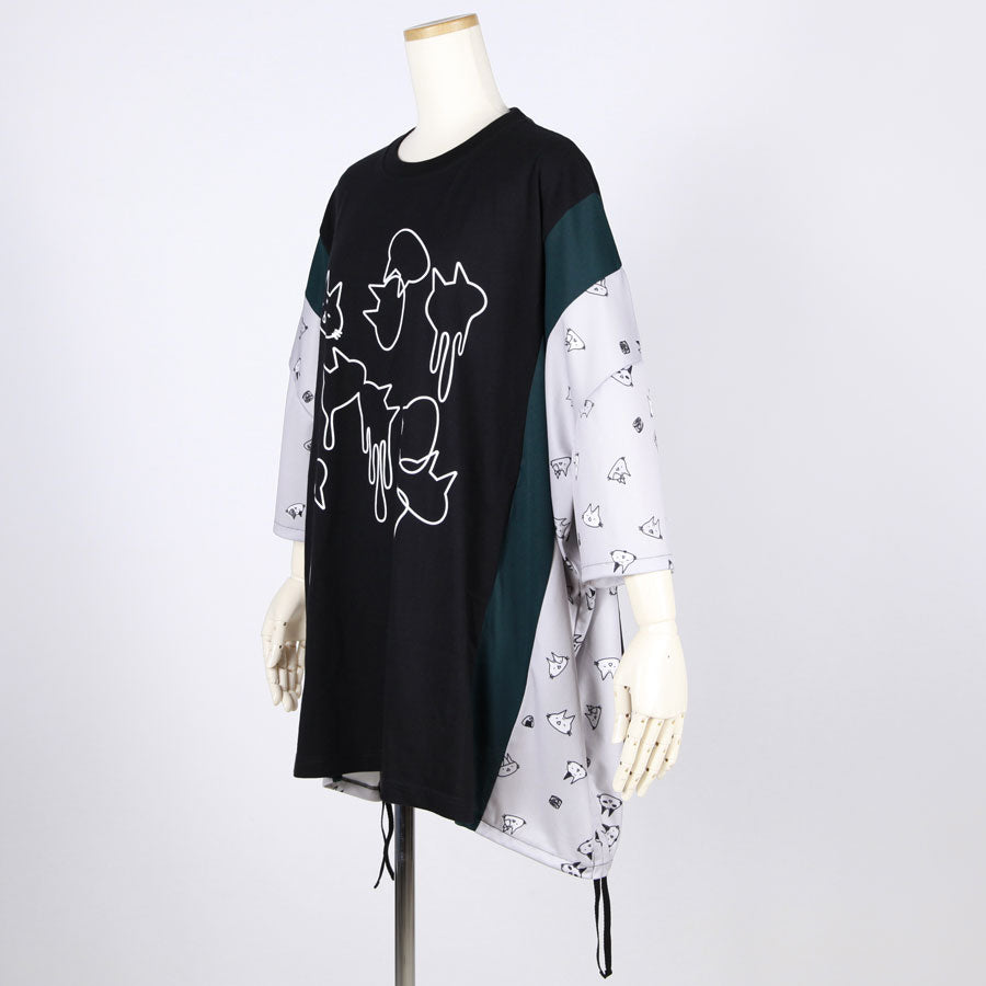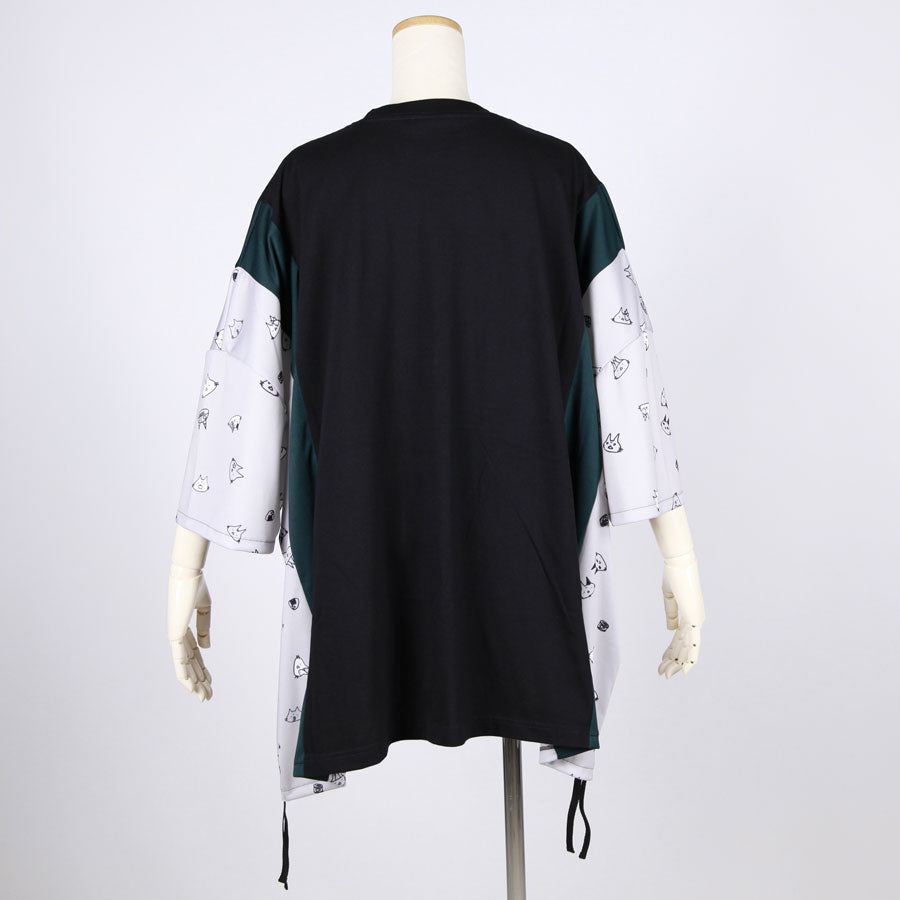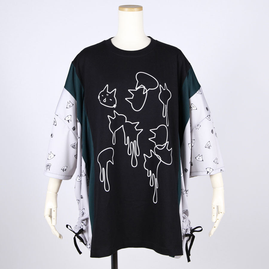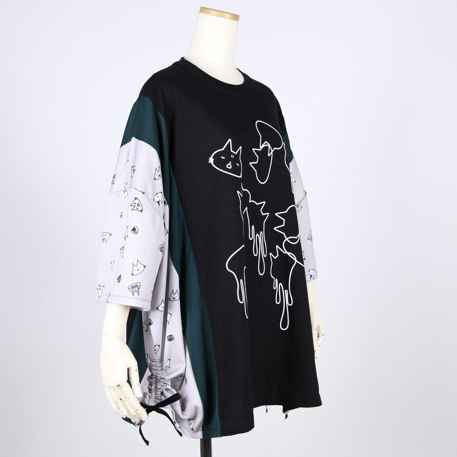 MINT NeKO パッチワークサイドギャザーカットソー BK