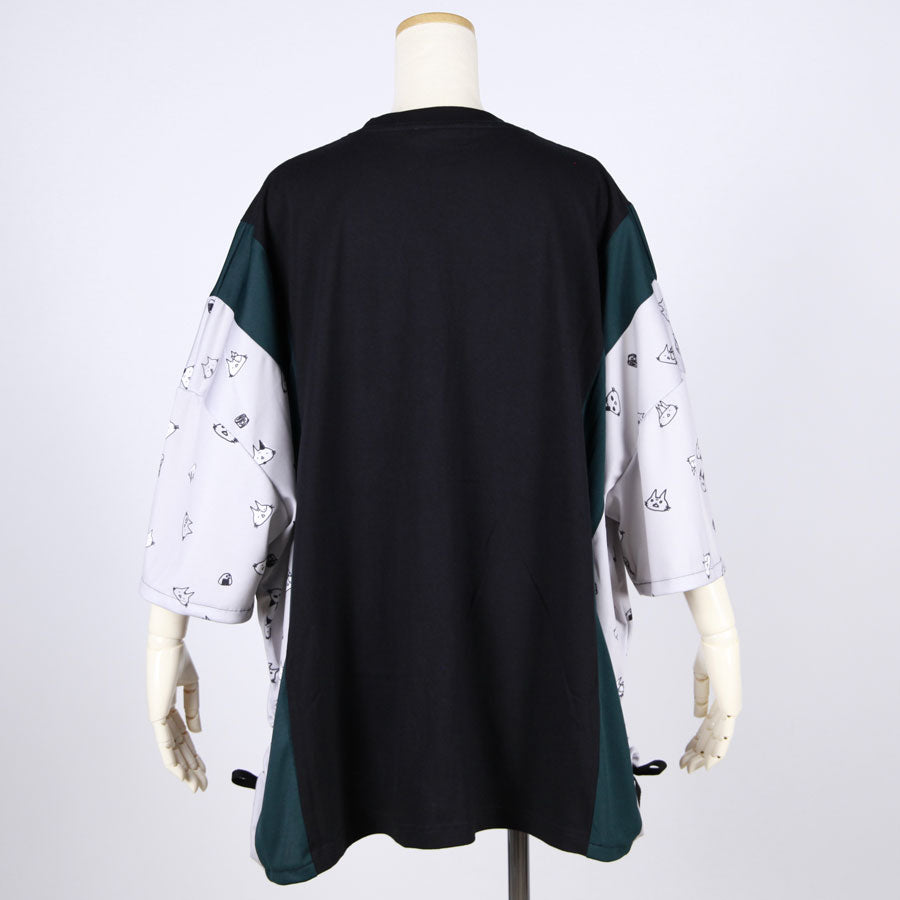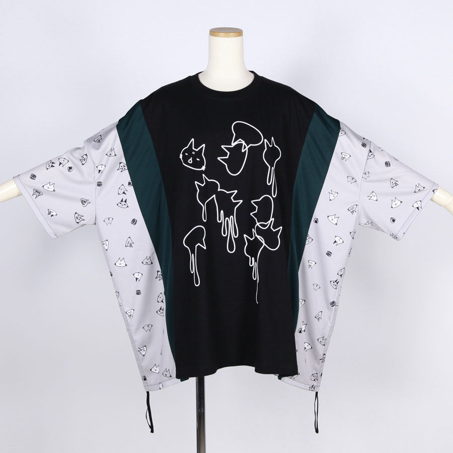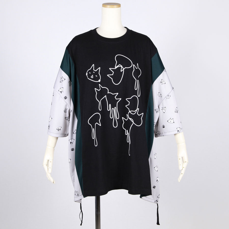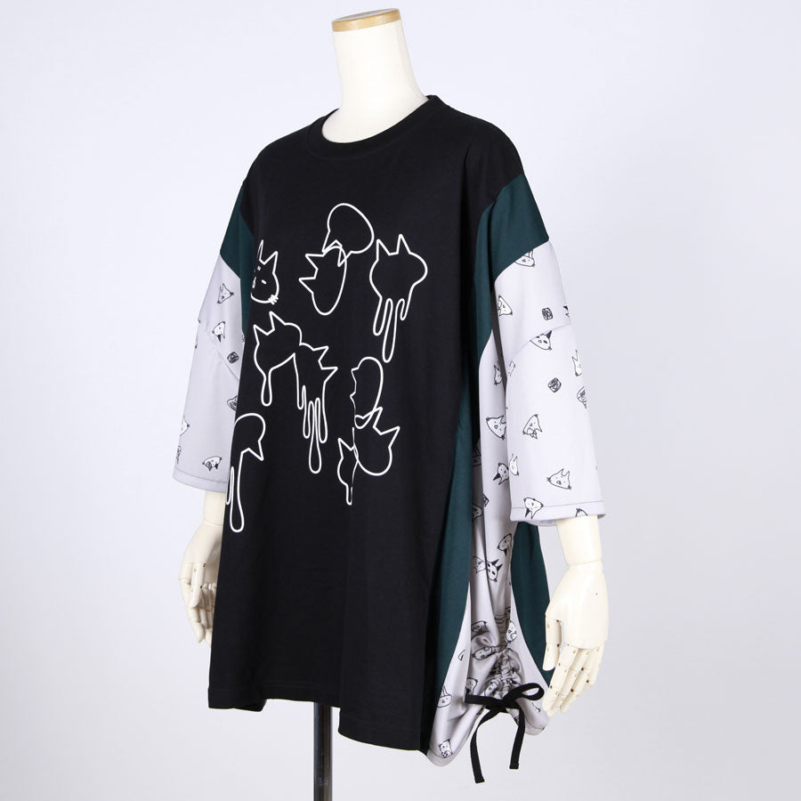 MINT NeKO パッチワークサイドギャザーカットソー BK