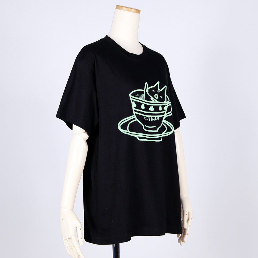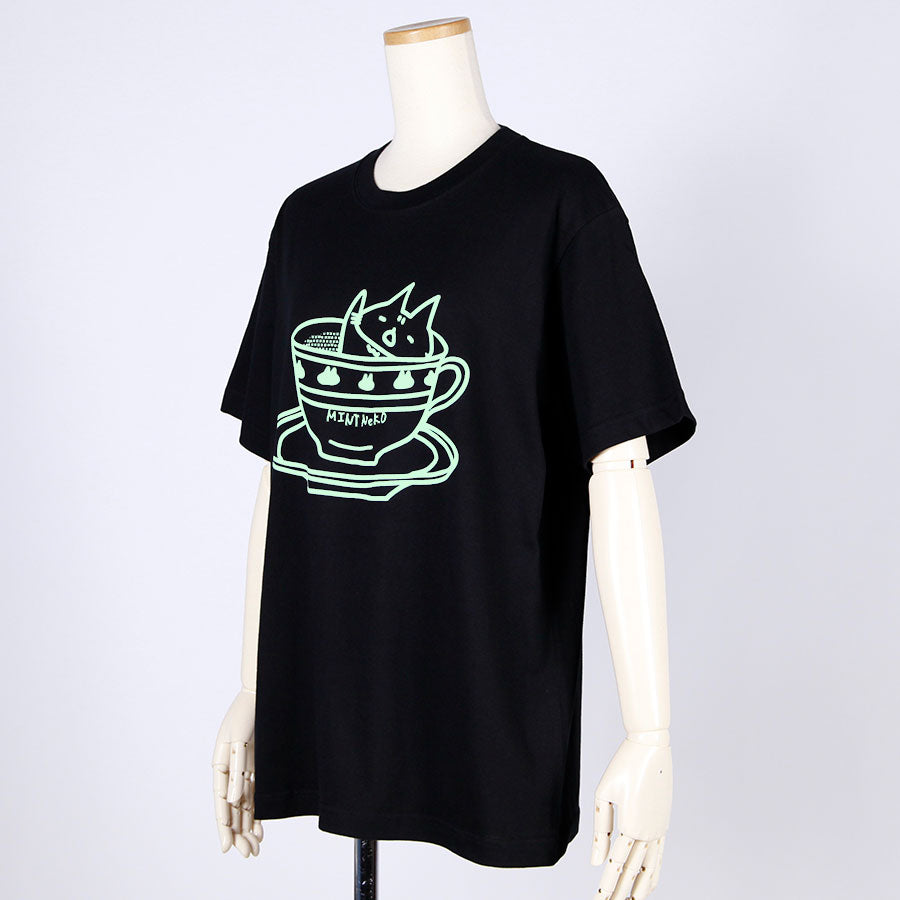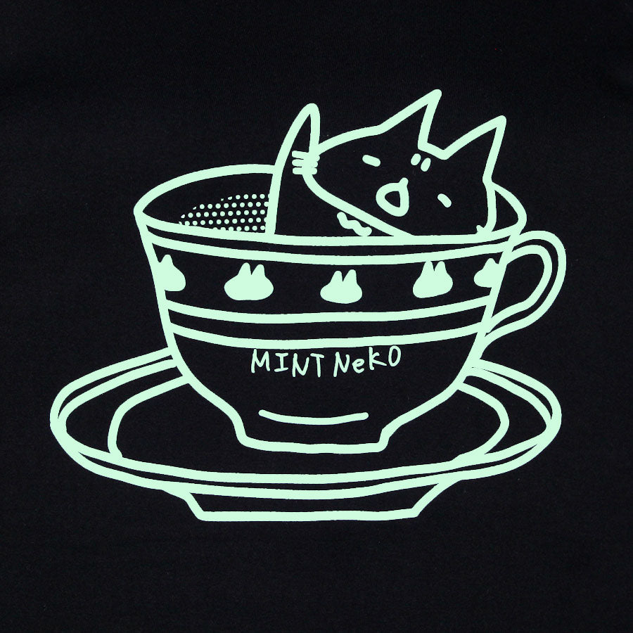 ティーカップに入った吾輩を抹茶ラテカラーでプリントしました。