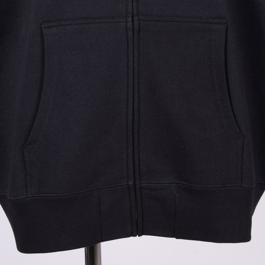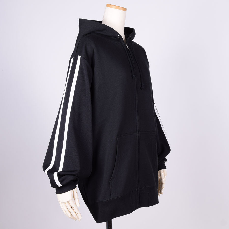 袖をジャージ生地で切り替えたジップアップタイプのスウェットフーディー。