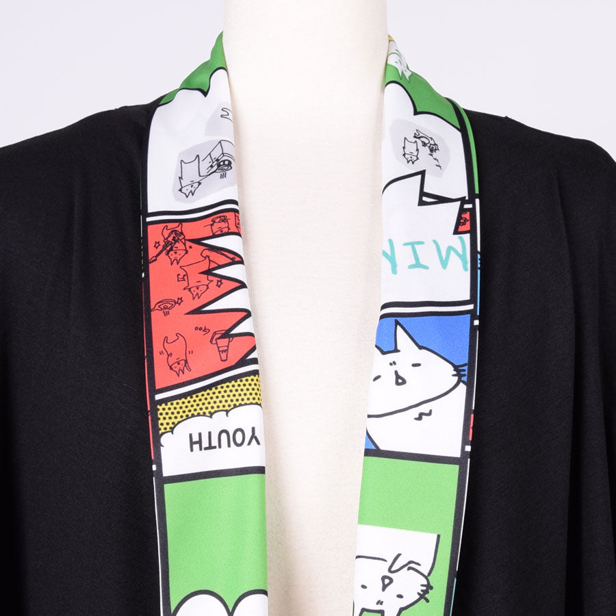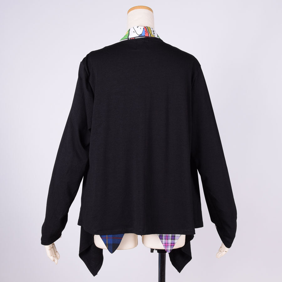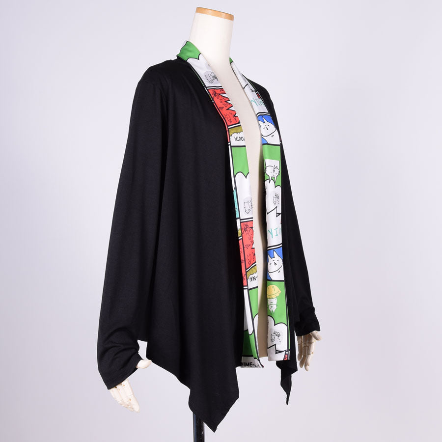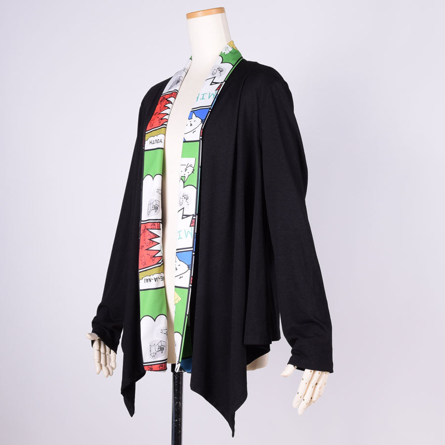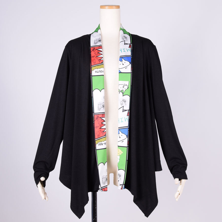 衿部分をオリジナルテキスタイルで切り替えた薄手のカーディガン。