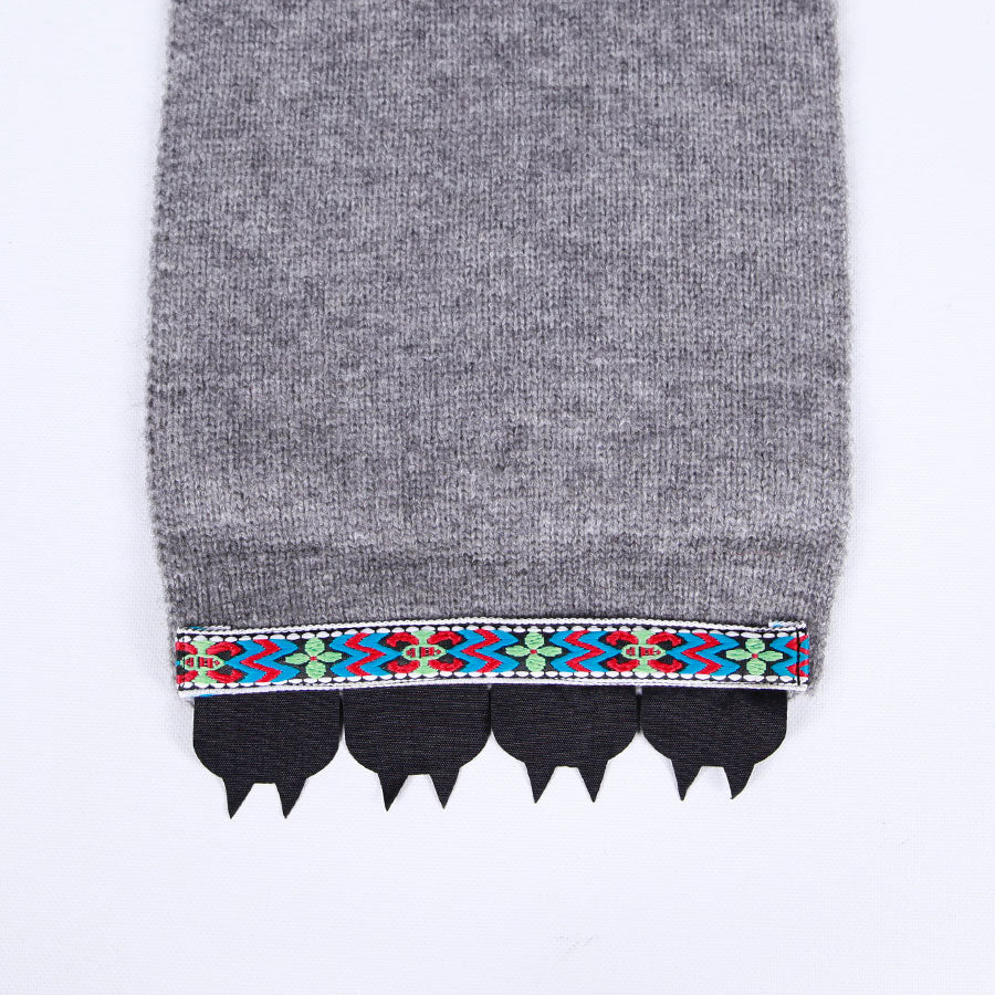縁にはフリンジのようにネコ型のテープを縫い付けてアクセントにしてあります。