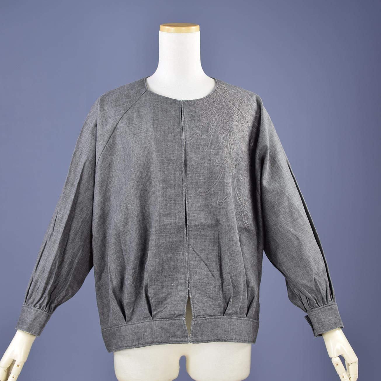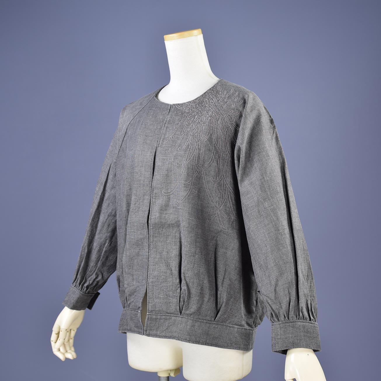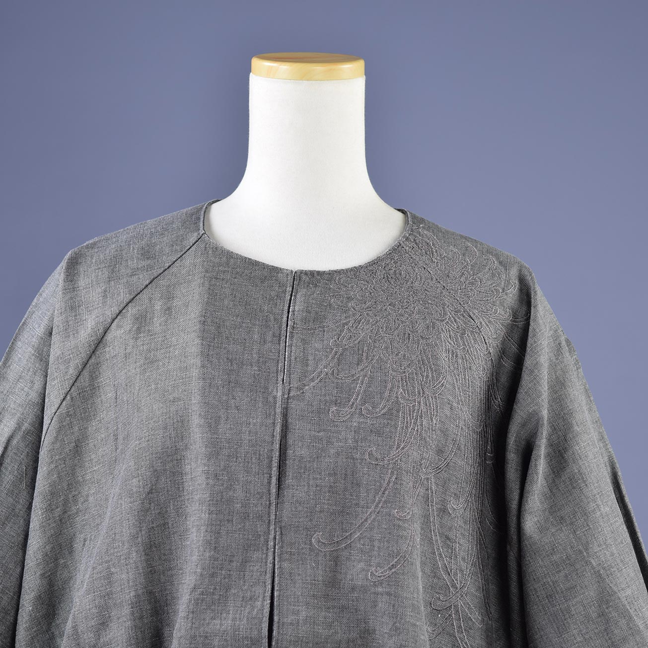 左肩部分には乱菊を刺繍してありますが、生地と同色なのであまり目立たずコーディネートの邪魔になりません。