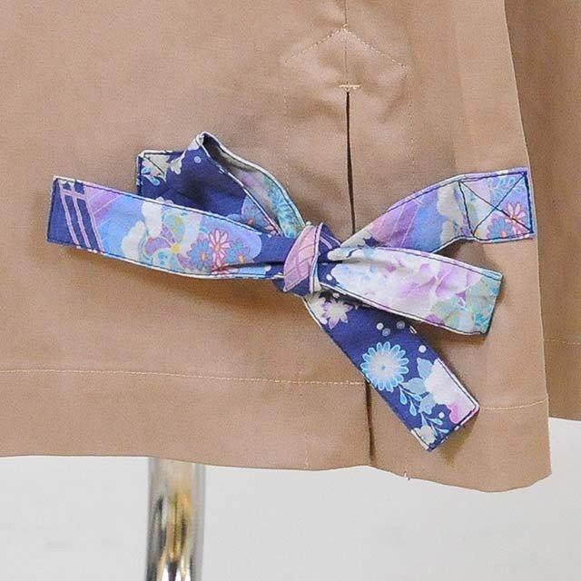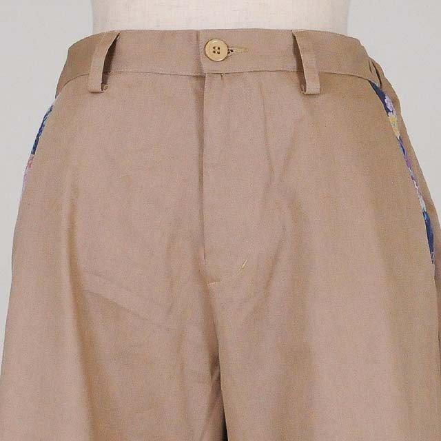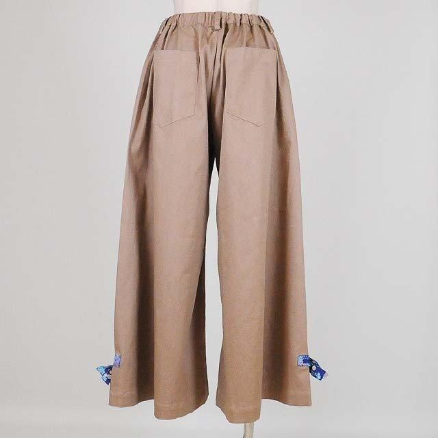 脇スリットに和柄のリボンが付いたワイドパンツ