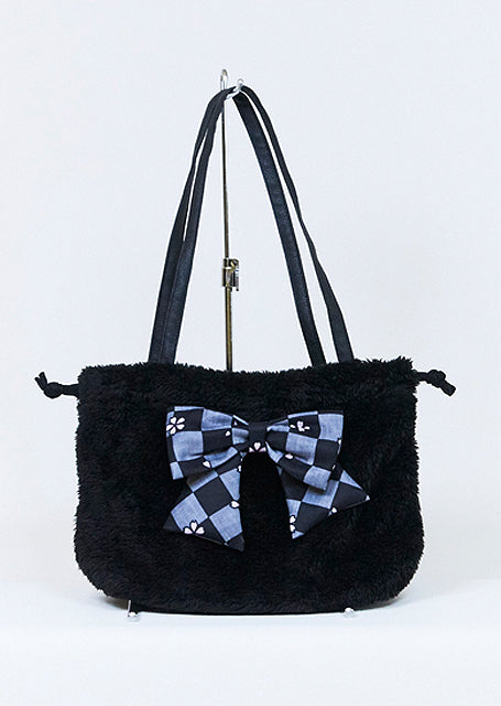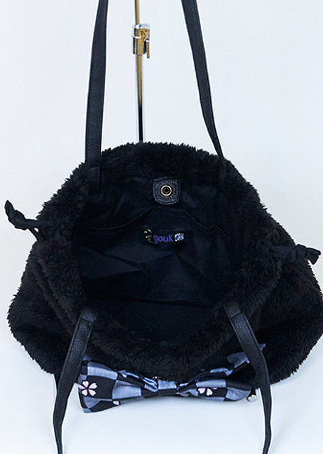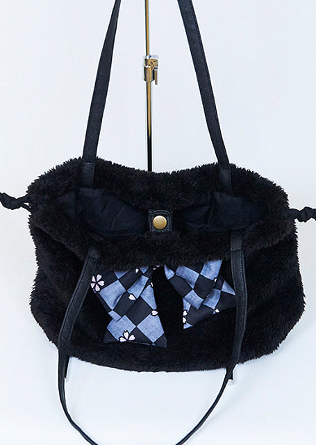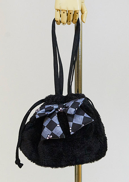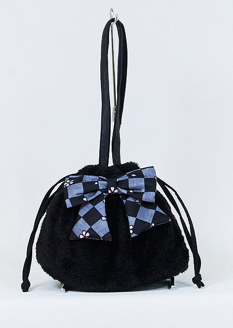 内ポケット付きで、口はボタンと紐でしっかりと閉じれます。