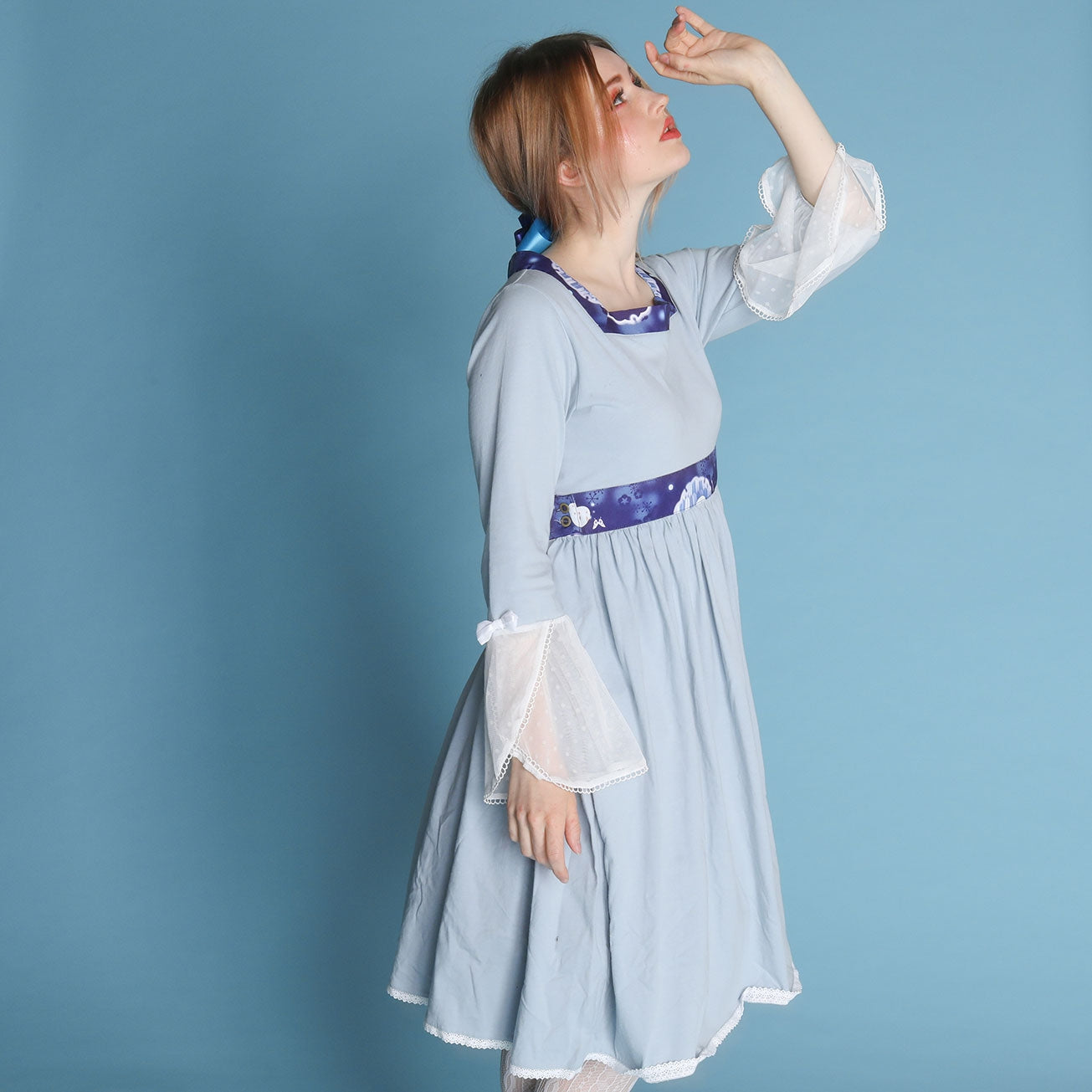 ゆったりとしたAラインですが、リボンを結ぶことによってウエストラインを美しく見せることもできます。