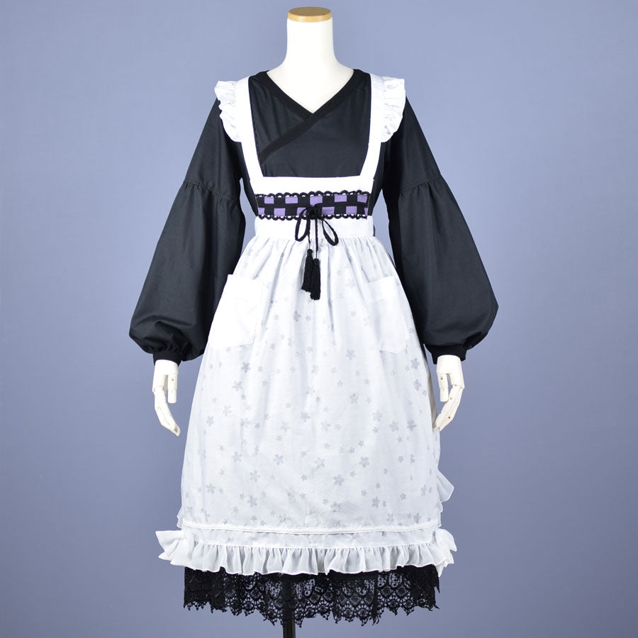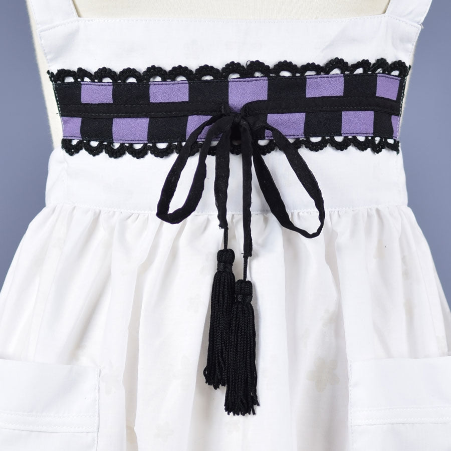 <本体サイズ>着丈:約79cm(胸から裾まで) 幅:約64cm 肩紐長さ:61-69cm(ボタン調整可能) 肩紐幅:約2.8cm 腰紐長さ:約68cm(片方) 腰紐幅:約8cm ポケット:2