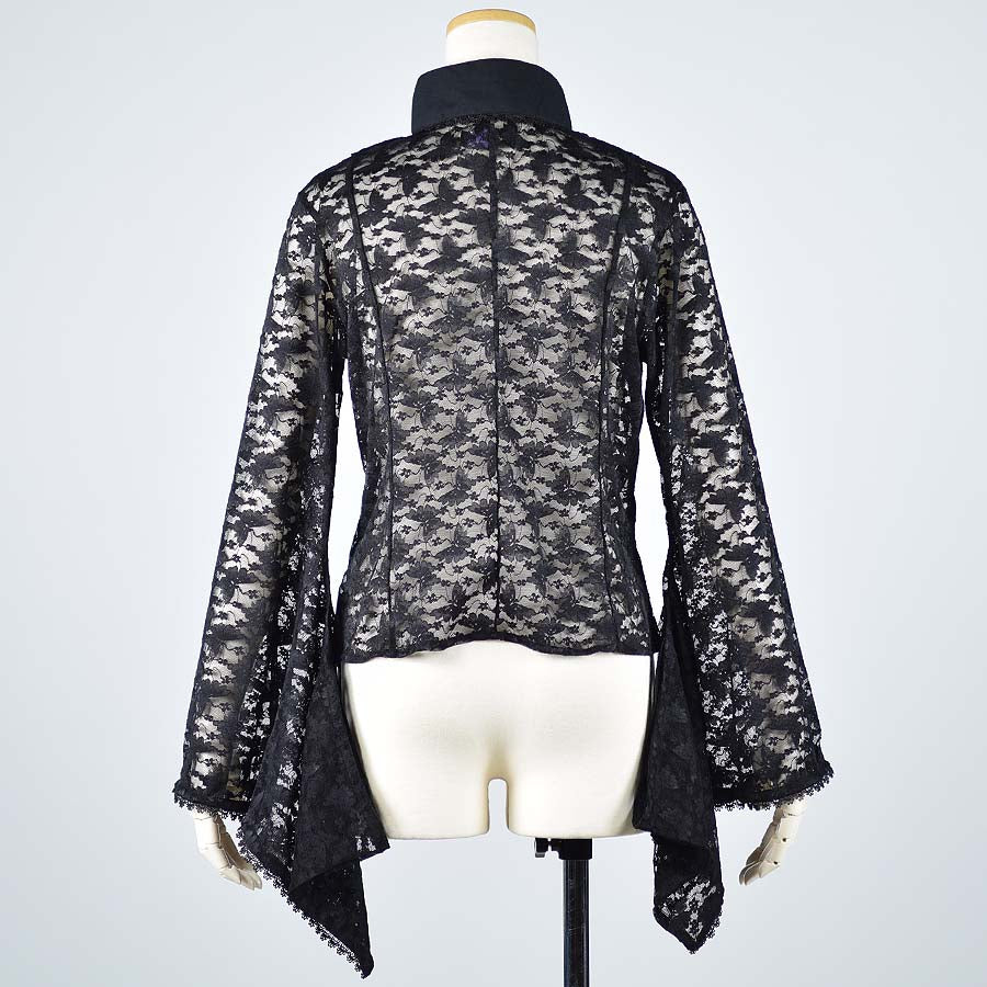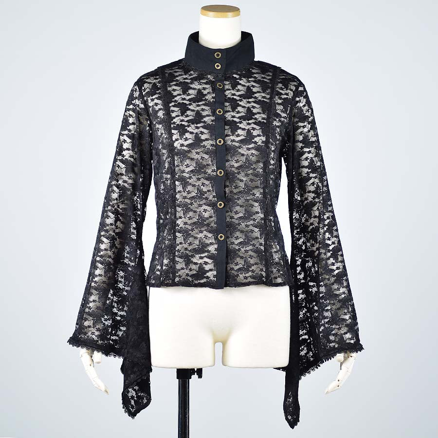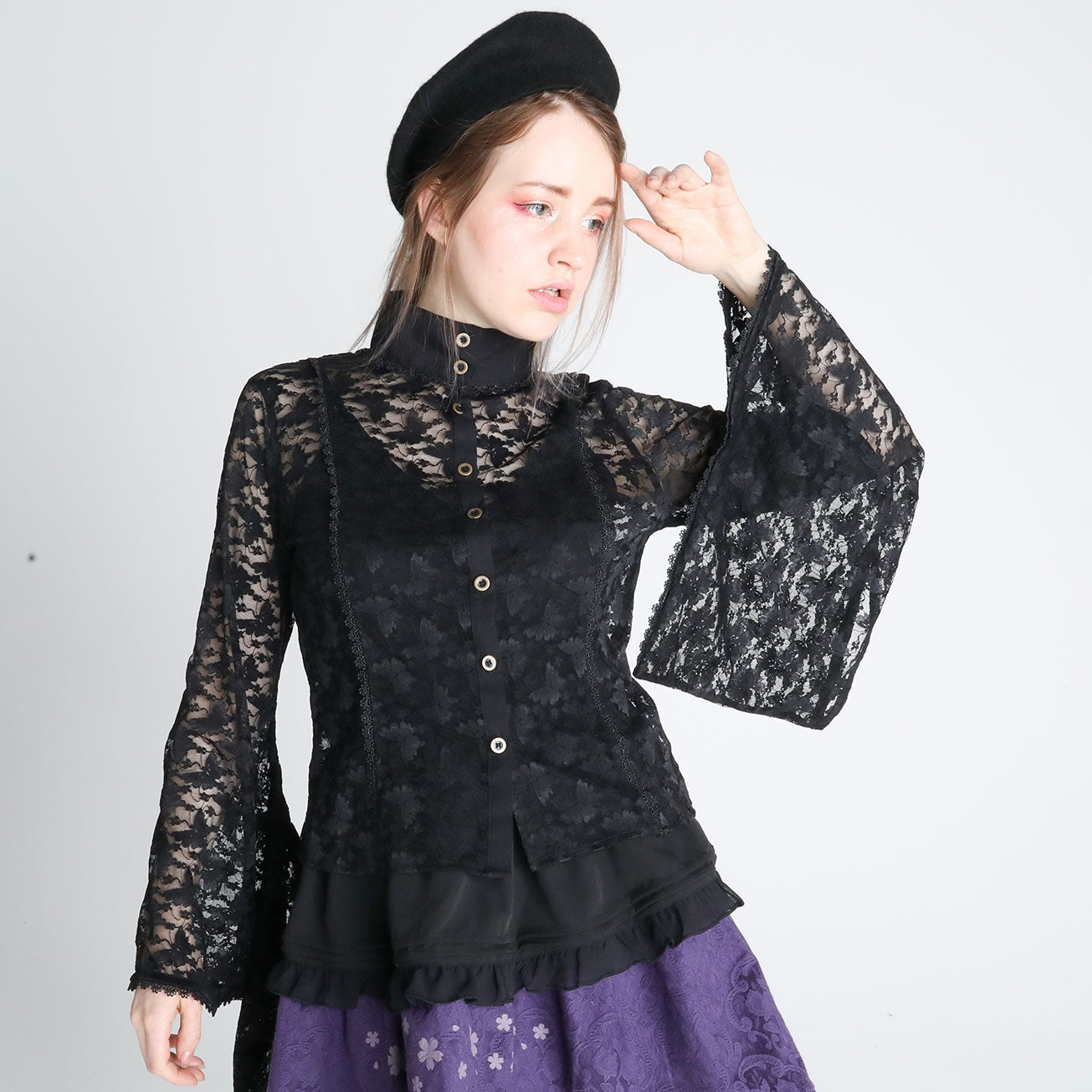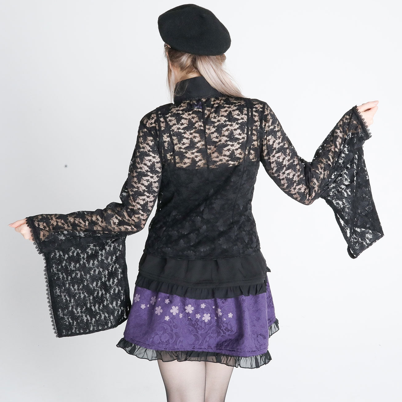 蝶々のレース生地を使用した、着物袖のブラウス。