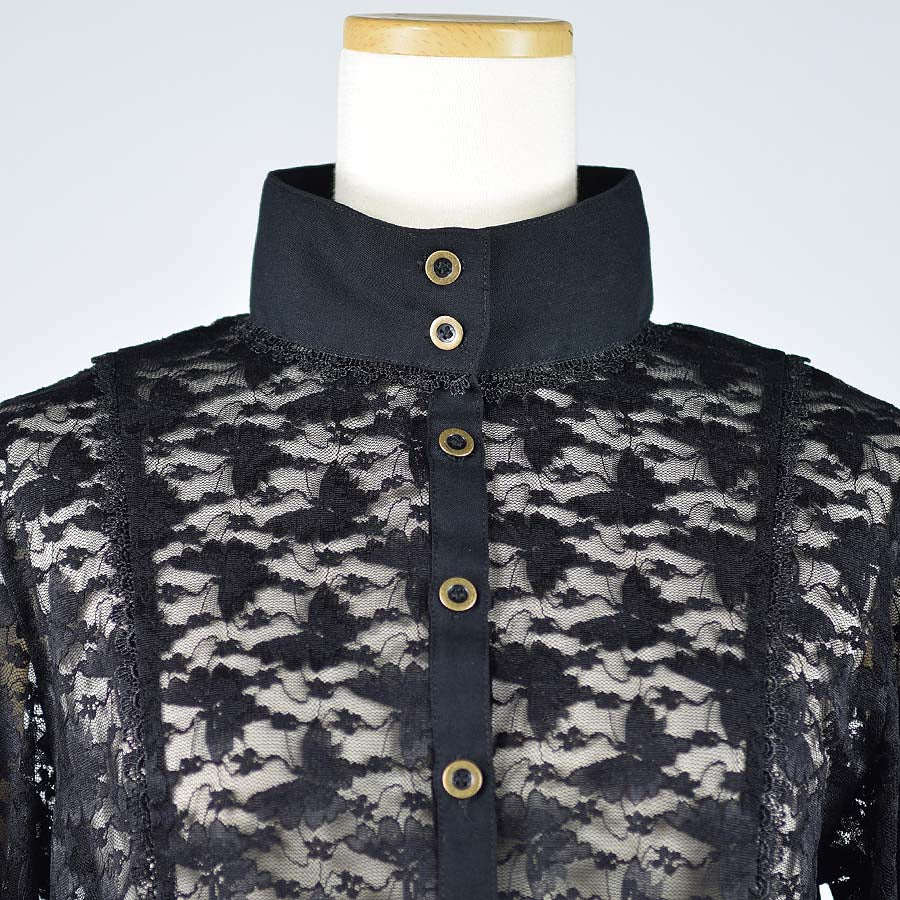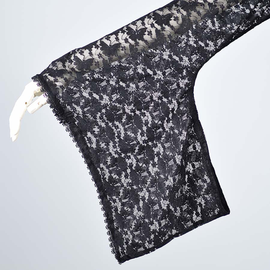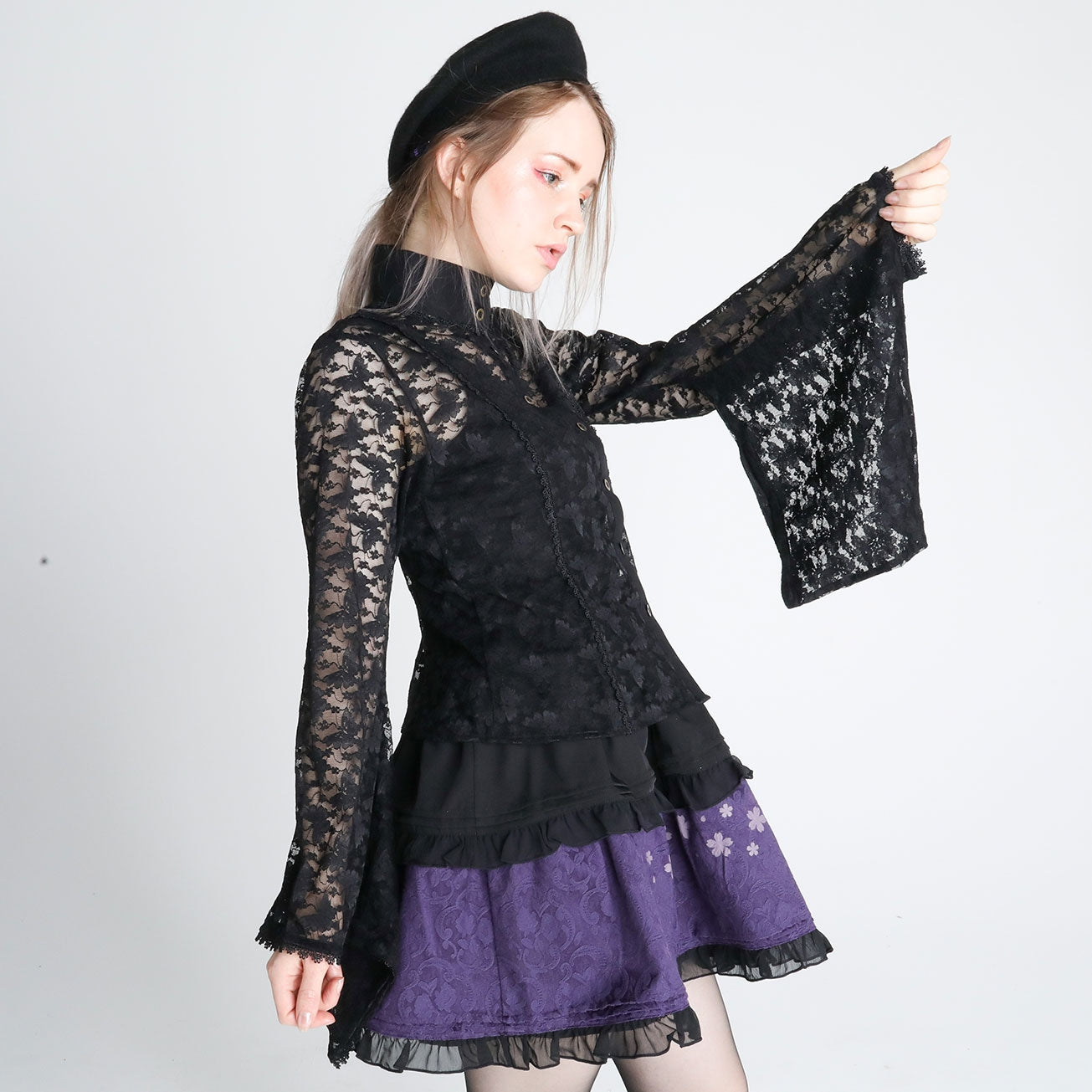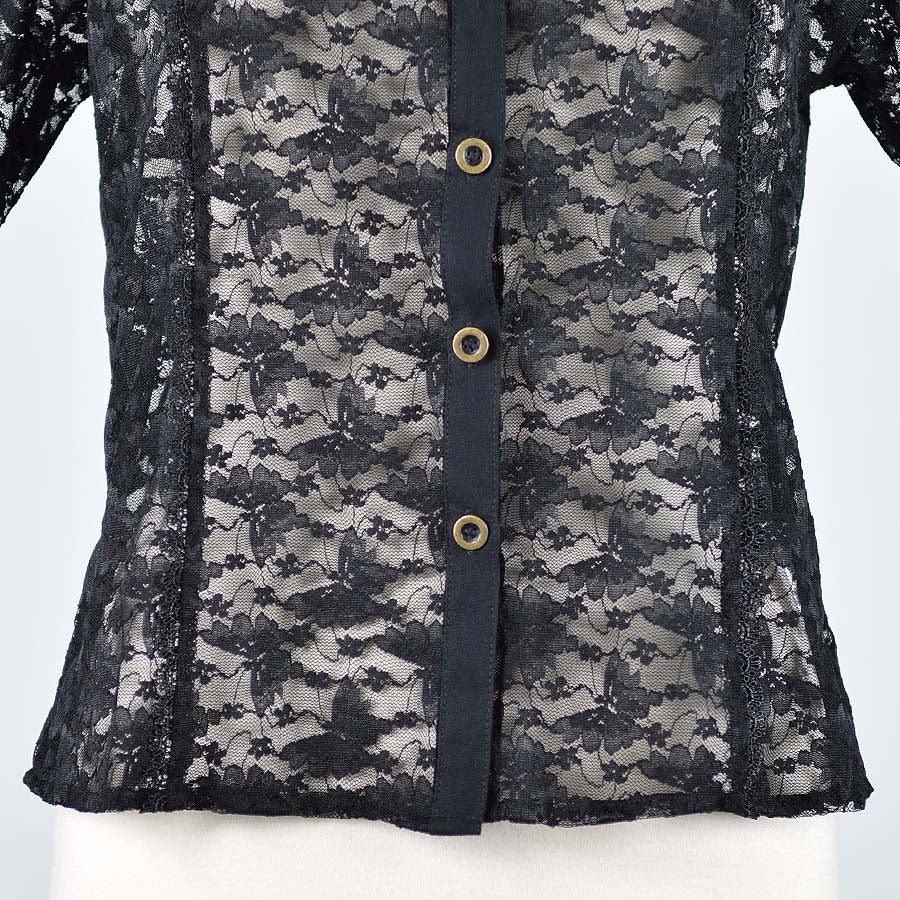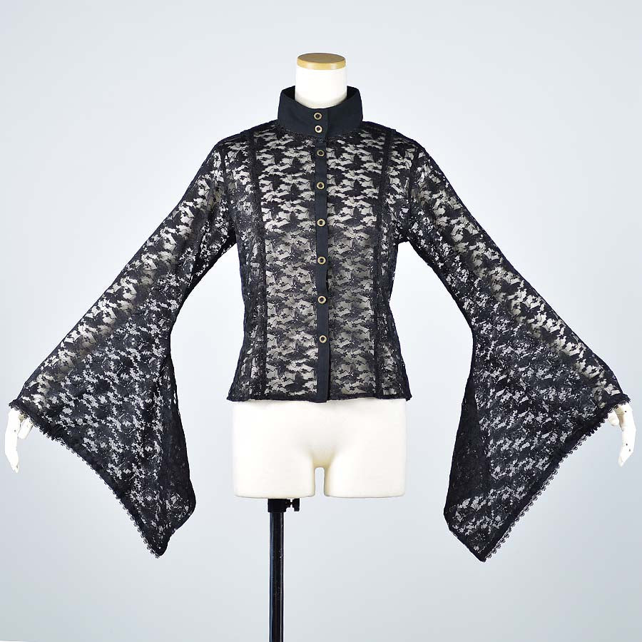 蝶々のレース生地を使用した、着物袖のブラウス。