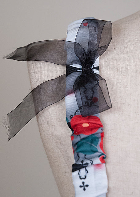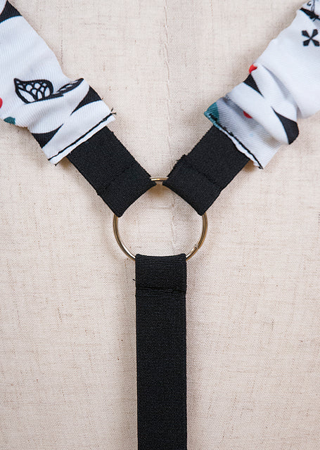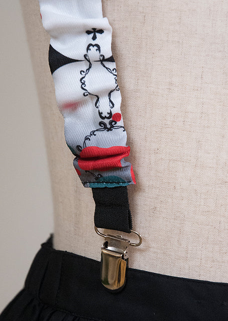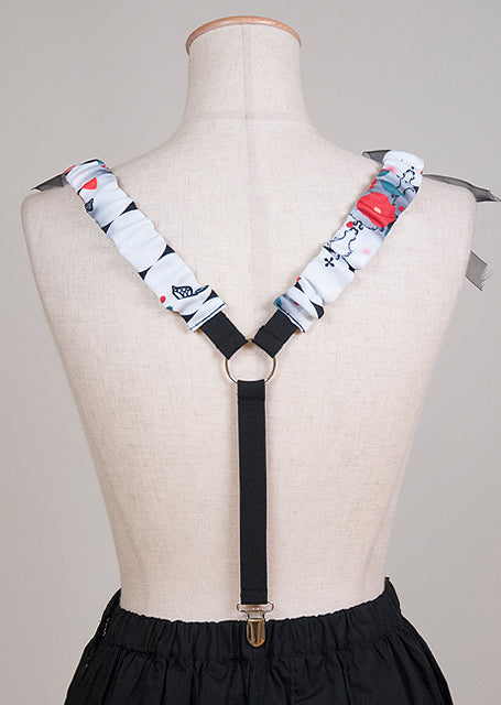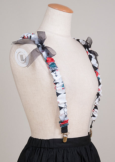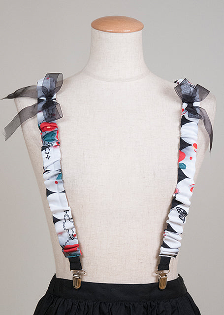 モリグチカ ヤゲンツバキ柄サスペンダー 白