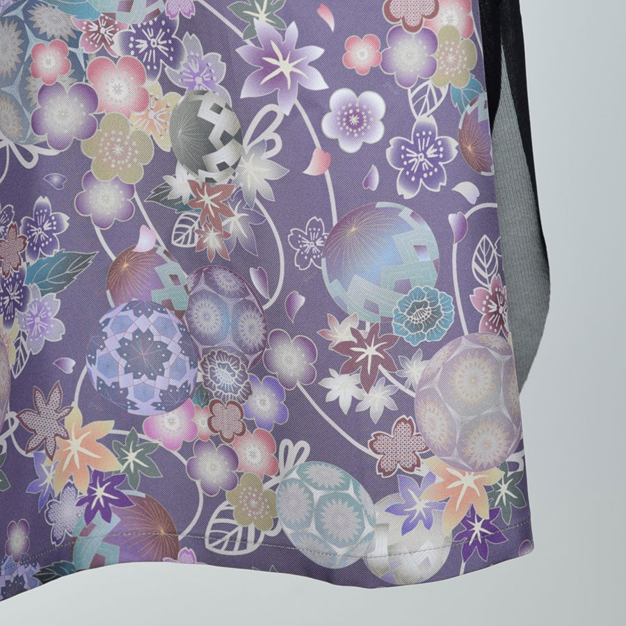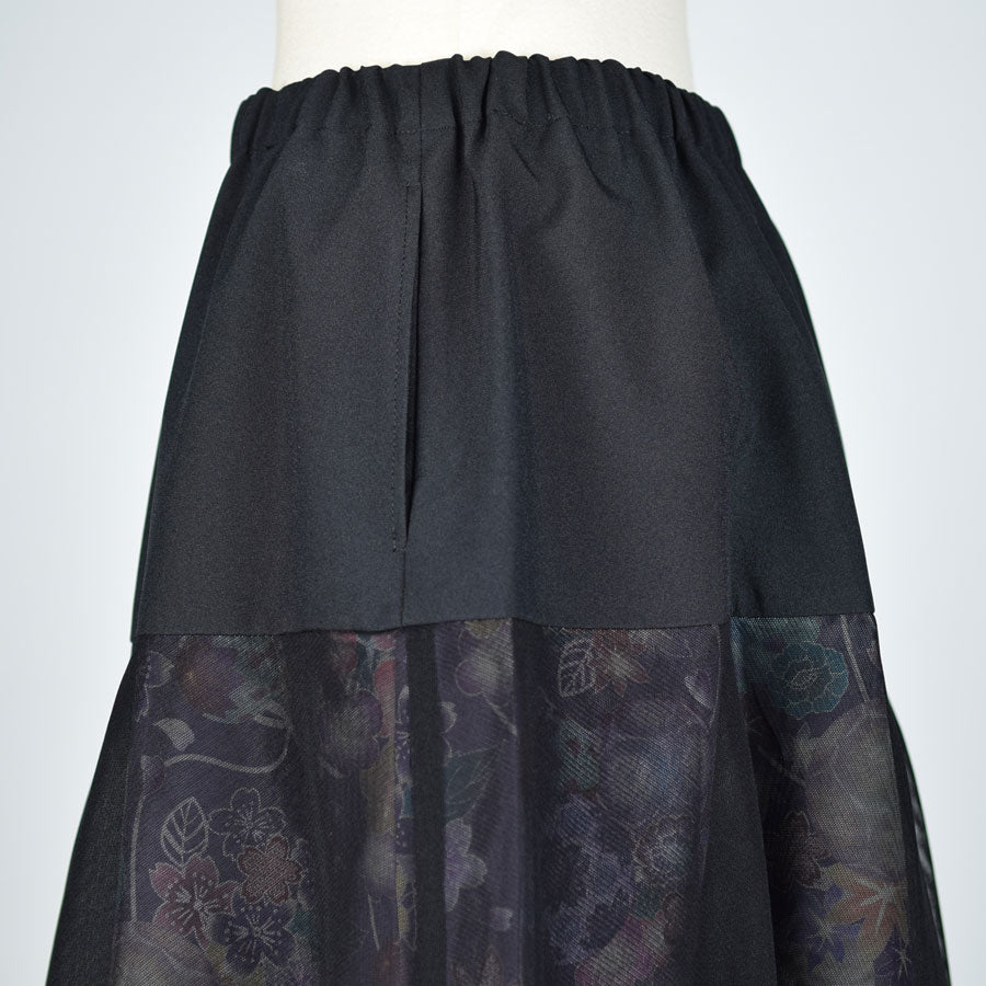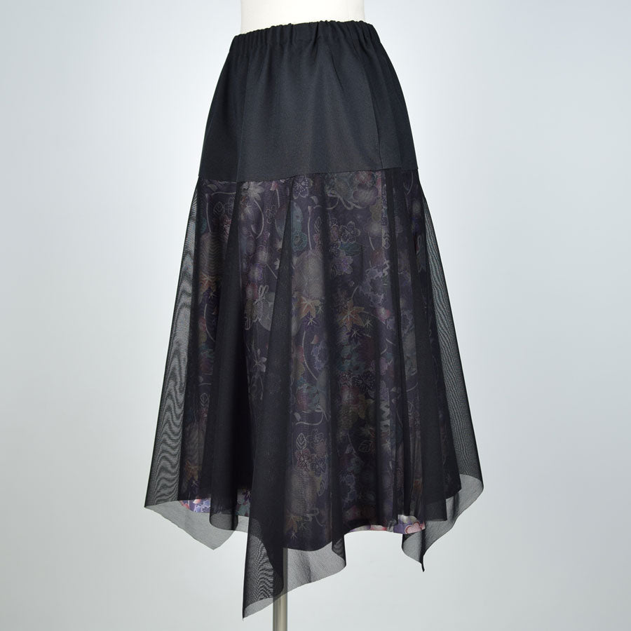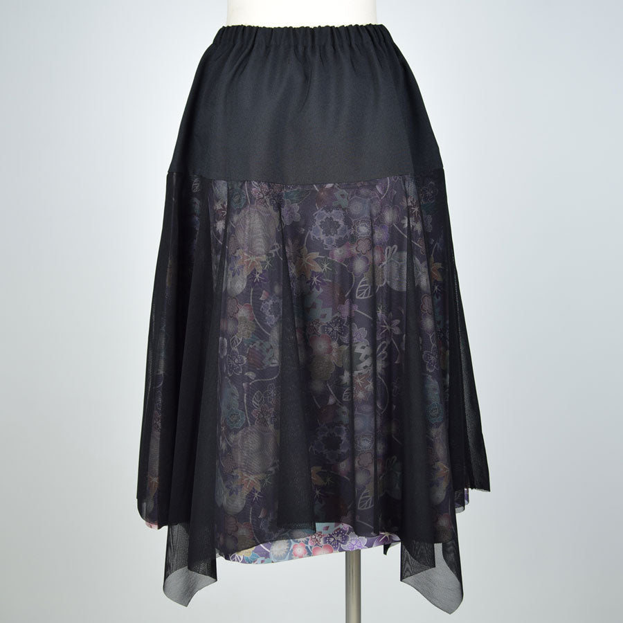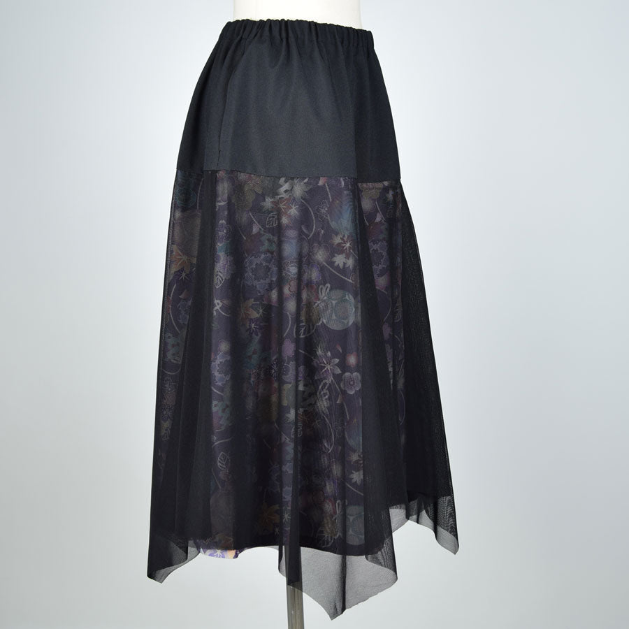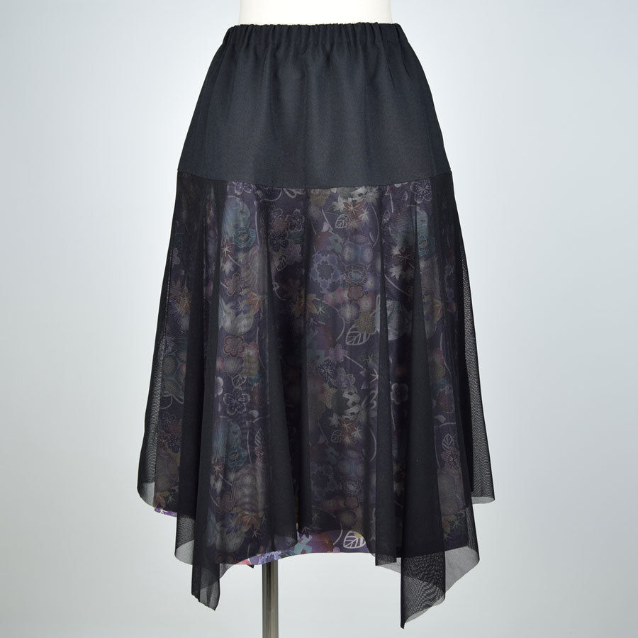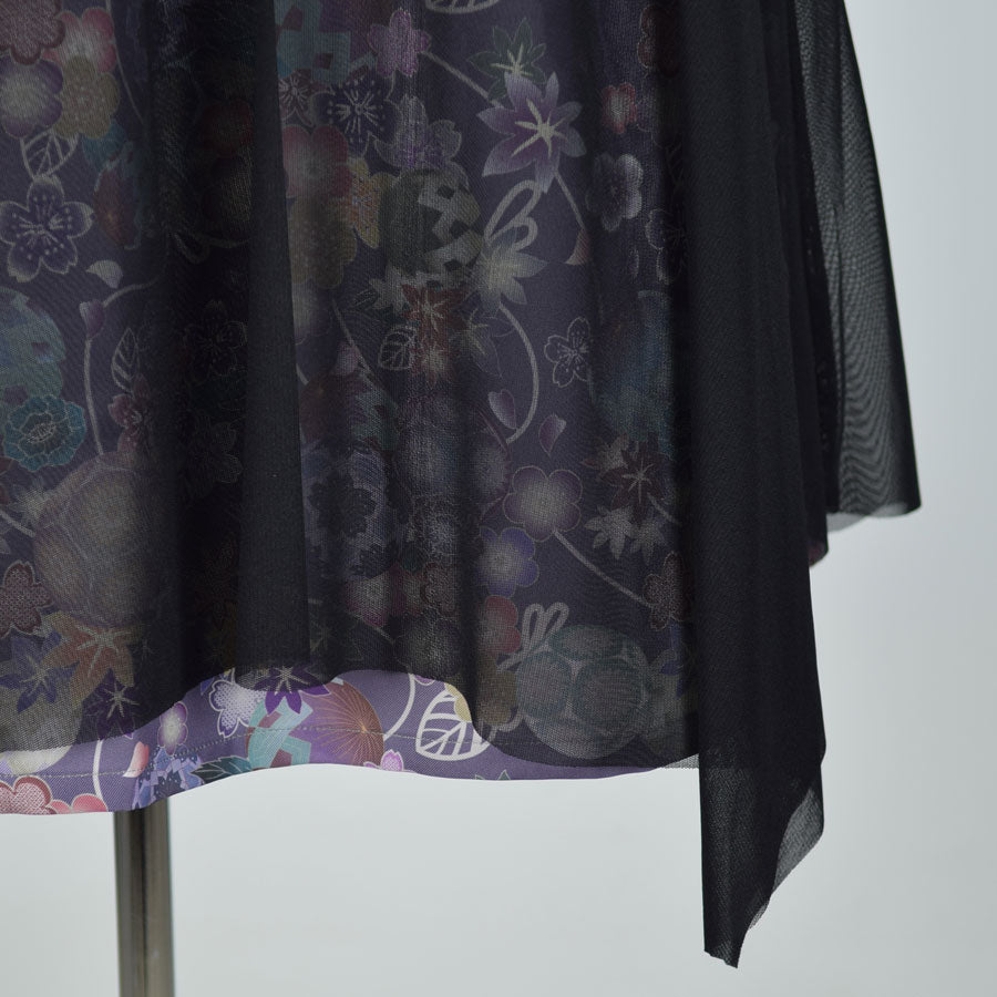 切り替えから下を和柄とネットチュールで重ねて作ったスカート。